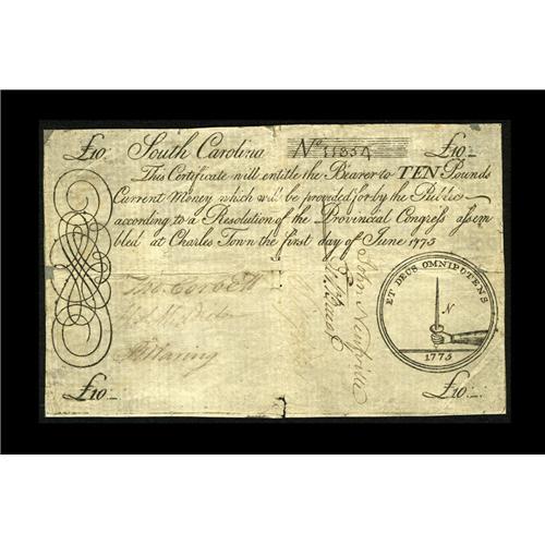 South Carolina June 1, 1775 $10 Very Good. This is a b