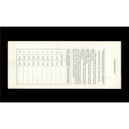 South Carolina Postal Savings Certificate. A $100 Posta Postal Savings System Series 1917 $2 New Yor