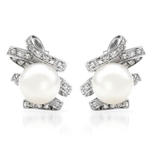South Sea Pearl with Channel Diamond Earring 18K White Gold | 255352 Grams, featuring 10.59 White Diamond Round ct 2 0.65 ct 56 ct 18 ct