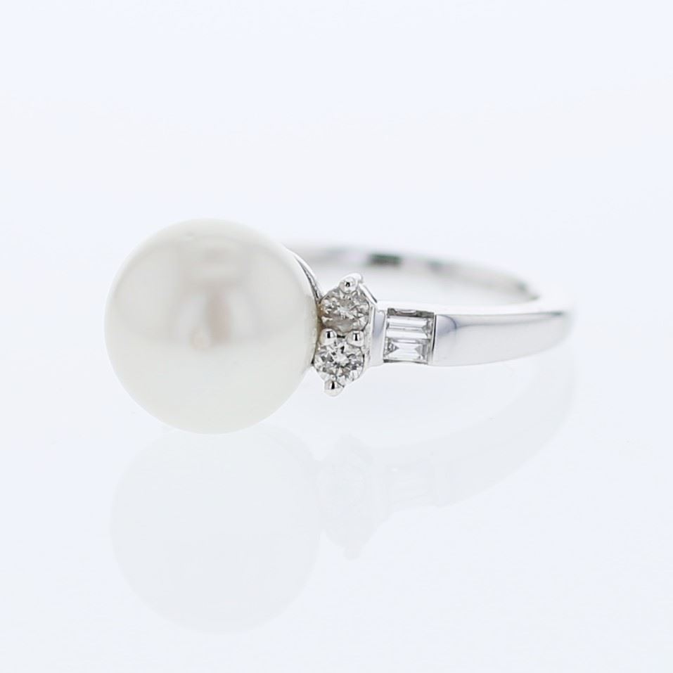 REF-72M2F ---- South Sea Pearl with Diamond Accent Ring in 14K White Gold