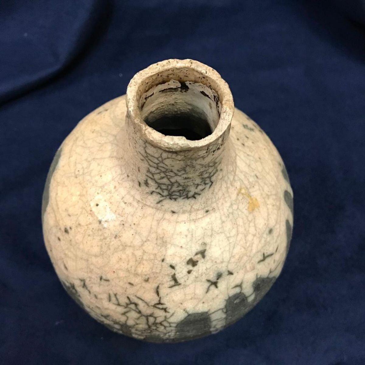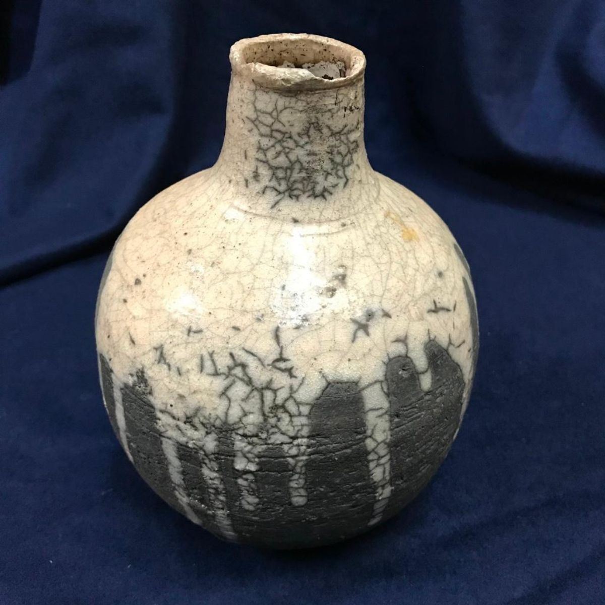 Southern made, gray & white raku ceramic pot, vase. 7" H X 5" D. Provenance: Moreland Smith Estate, NC.