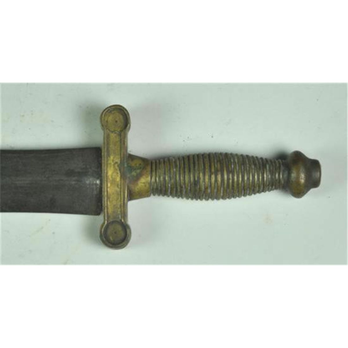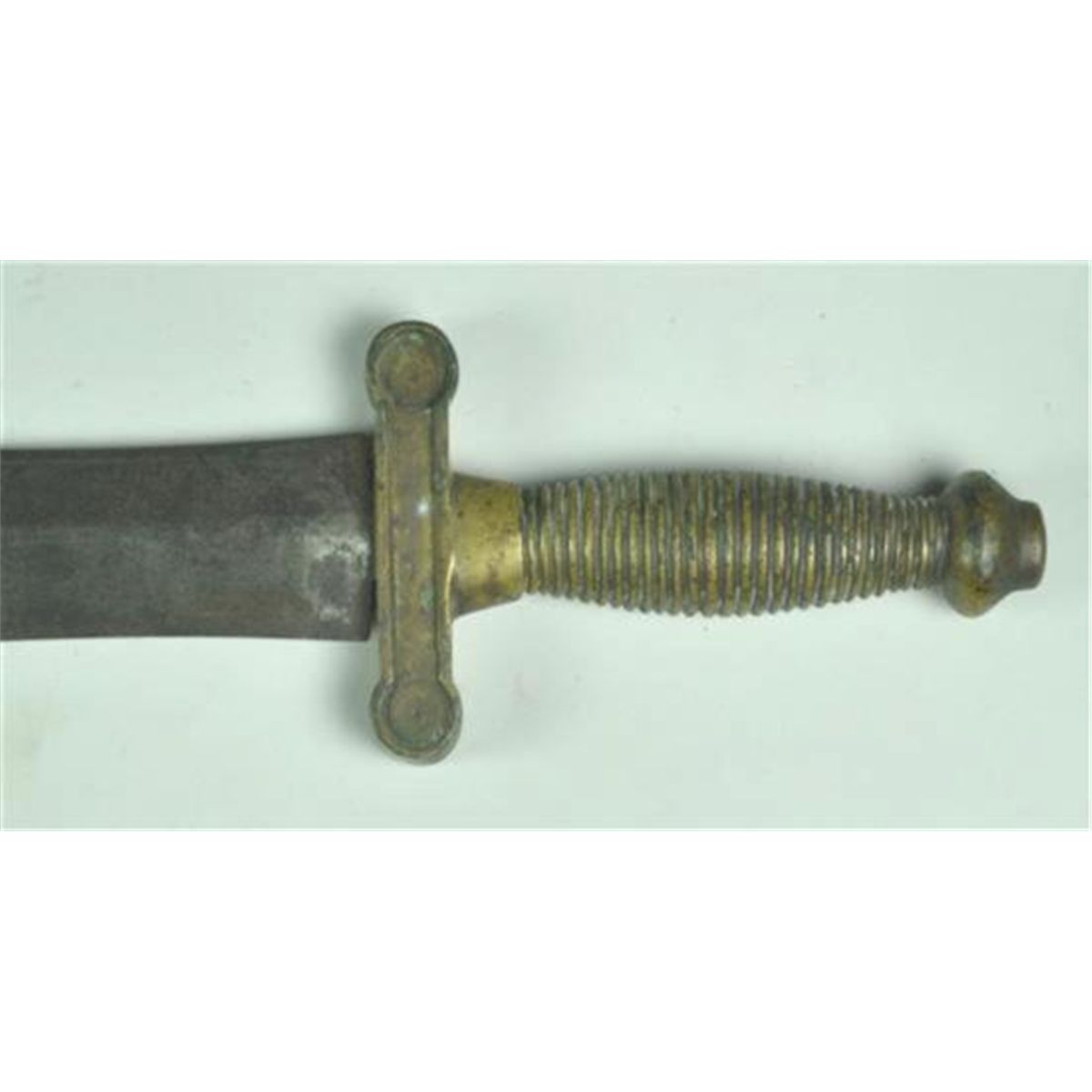 Southern Manufacture Artillery Short Sword (See Albaugh~s Book ~Confederate Swords 1963~, Fig. 31W). Hilt and grip are one-piece brass and loose. Blade is pitted and tapered as described by Albaugh. 19~ blade; 24 1/2~ overall. MWF959