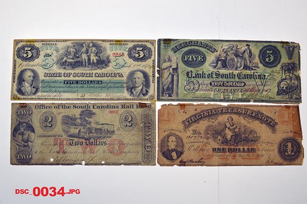 Lot of 10 notes, includes the notes from Louisiana, Georgia, South Carolina, Virginia and CSA. Good to XF. Please inspect. Sold "As is", no returns accepted.
