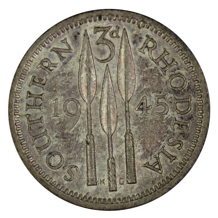 Southern Rhodesia 1945 Threepence, about Uncirculated