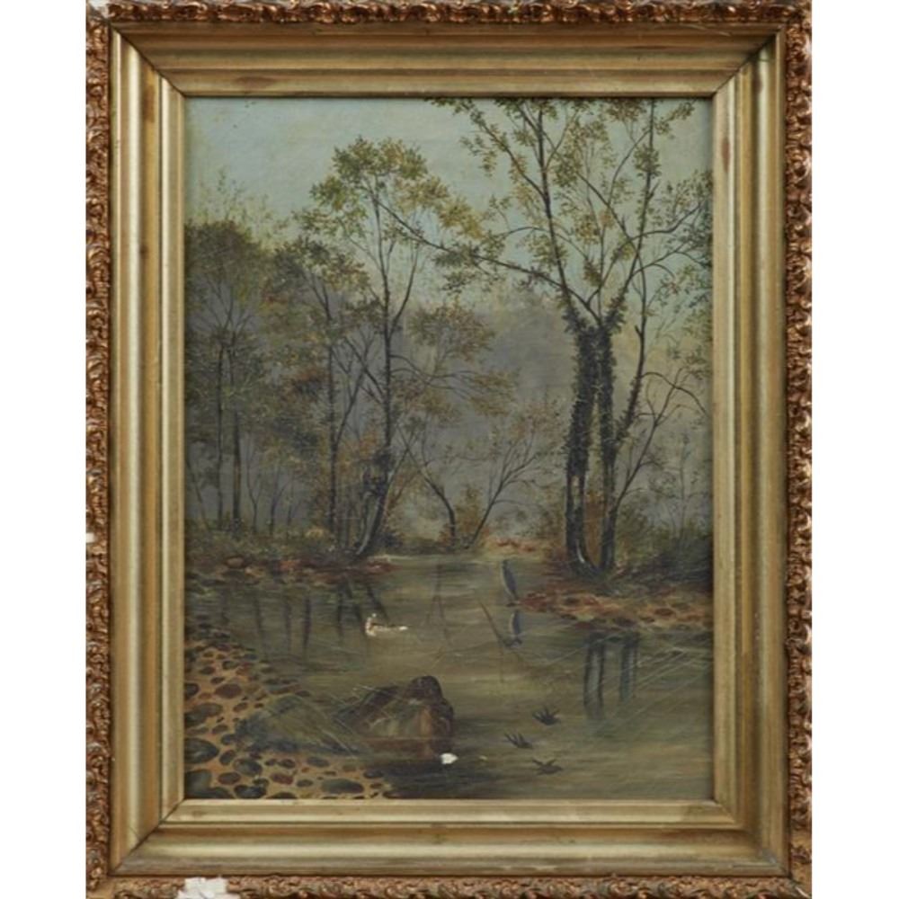 Item Overview Description: Southern School, "King Fisher in a Swamp Landscape," 19th c., oil on canvas, presented in a gilt and gesso frame, H.- 15 1/2 in., W.- 11 1/2 in. Provenance: The Estate of John Peter Eaves, New Orleans, Louisiana. - 945-032418-IN-00292