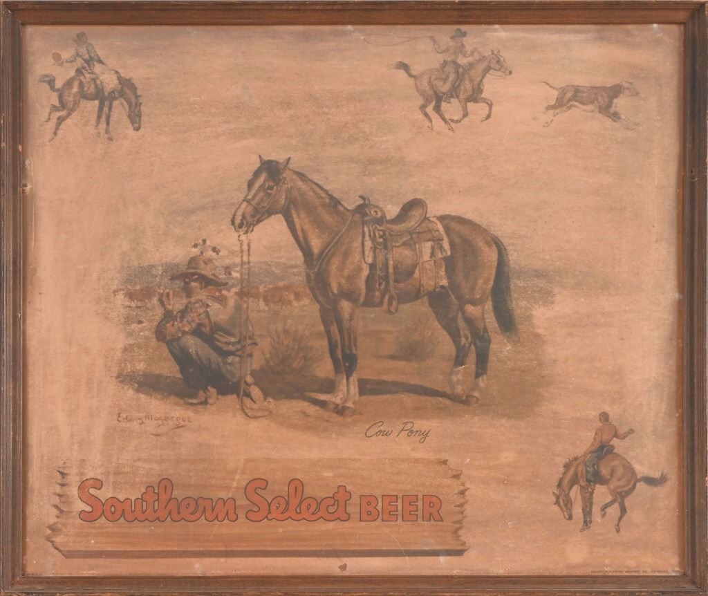 "Cow Pony", from original by Edwin Megargee, circa 1940's. Frame measures 21" x 25".