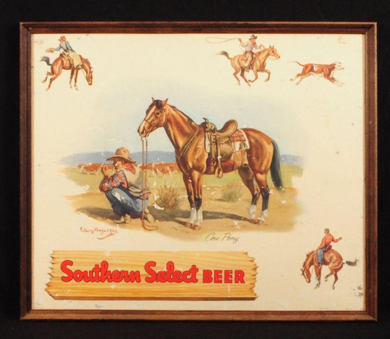 Southern Select Beer Advertisement "Cow Pony" Measures 21"x25" With surface loss.
