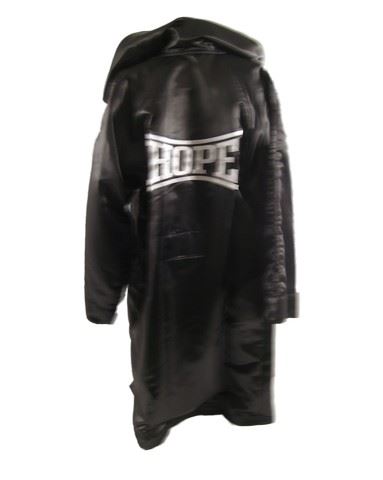 Billy Hope (Jake Gyllenhaal) shiny black boxing robe with HOPE on the front and back.