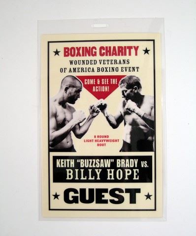 Boxing Charity Wounded Veterans of America Boxing Event Keith "Buzzsaw" Brady vs. Billy Hope 'Guest' laminated pass. (approx. 7" x 4 1/2")