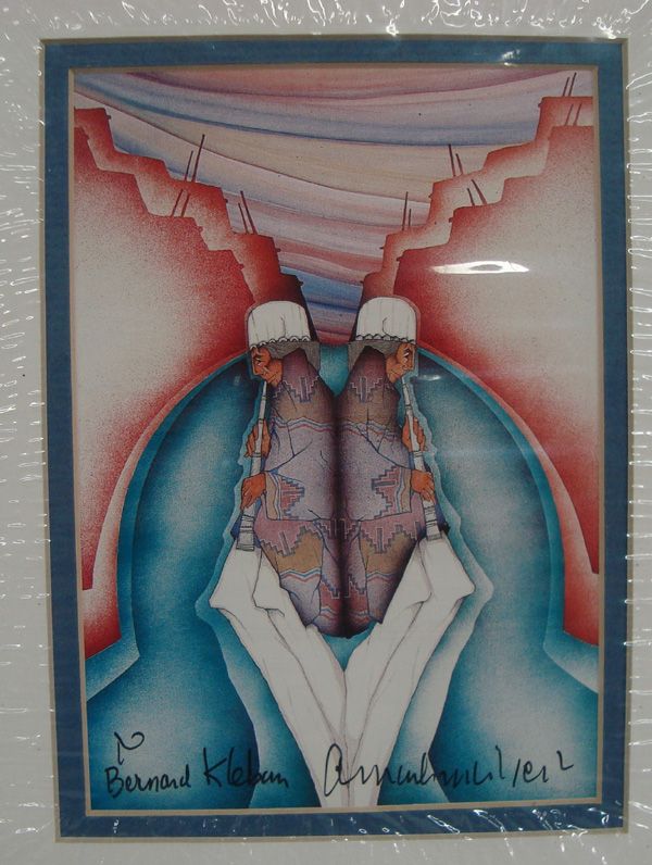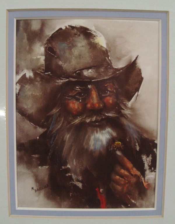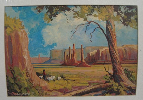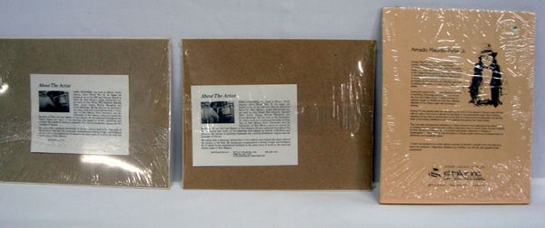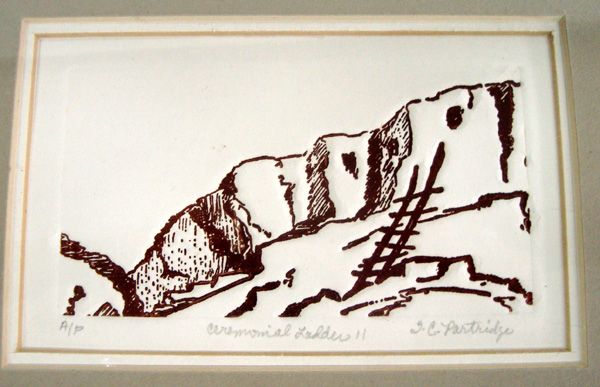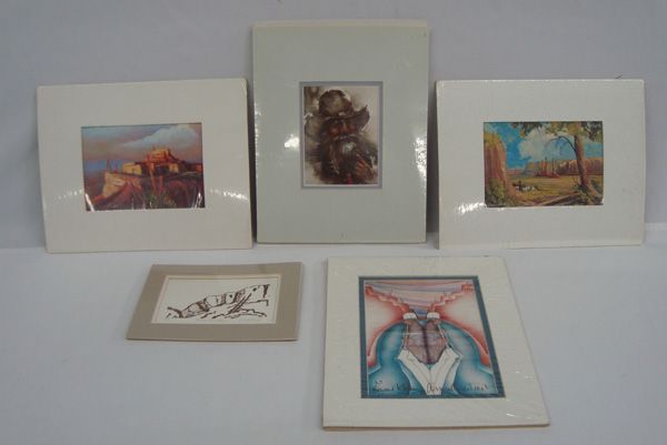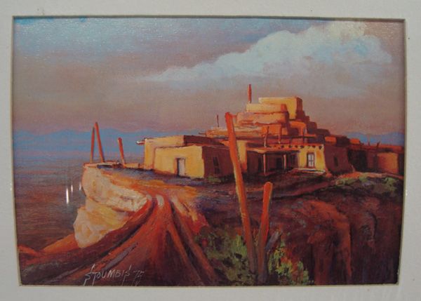 5 Southwest Matted Prints. There is an Amado M Pena, Jr. print (the double braves) in this interesting group. Also are two prints by John Stoumbis of an adobe and of a desert scape. A smiling mountain man is another print, by M Garrick and the final art in this group is an embossed painting of adobes, which is signed ''Ceremonial Ladder T. G. Partridge.'' The visual of the Pena print is 6.5''H x 4''W.