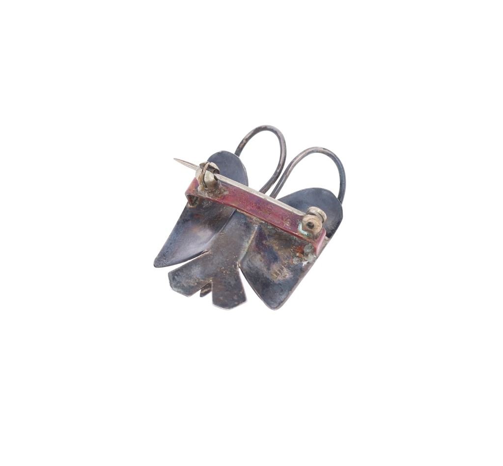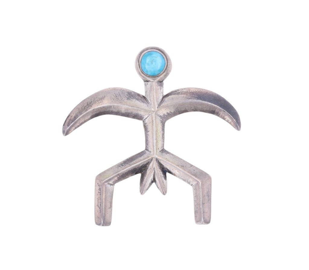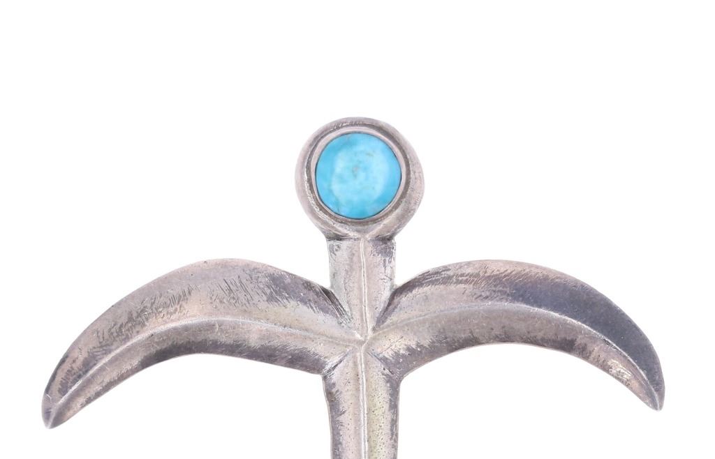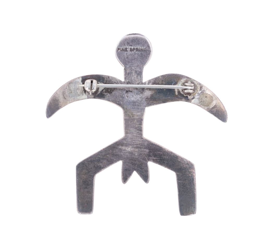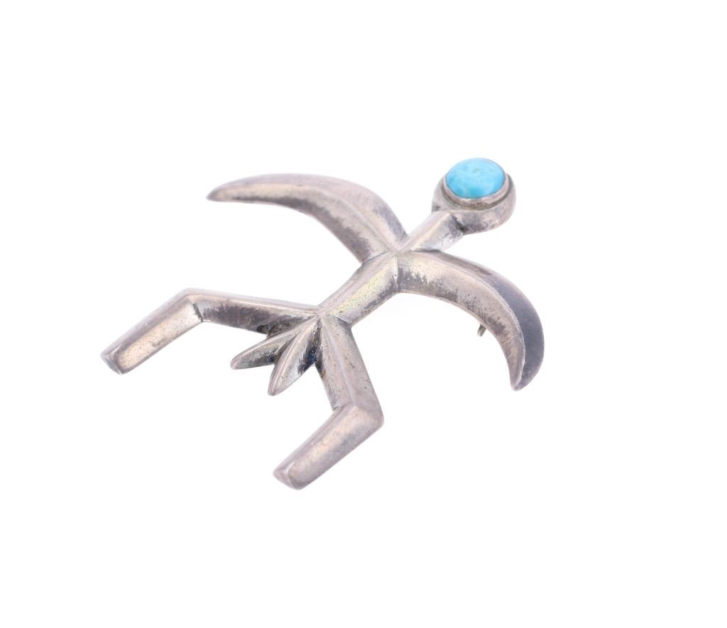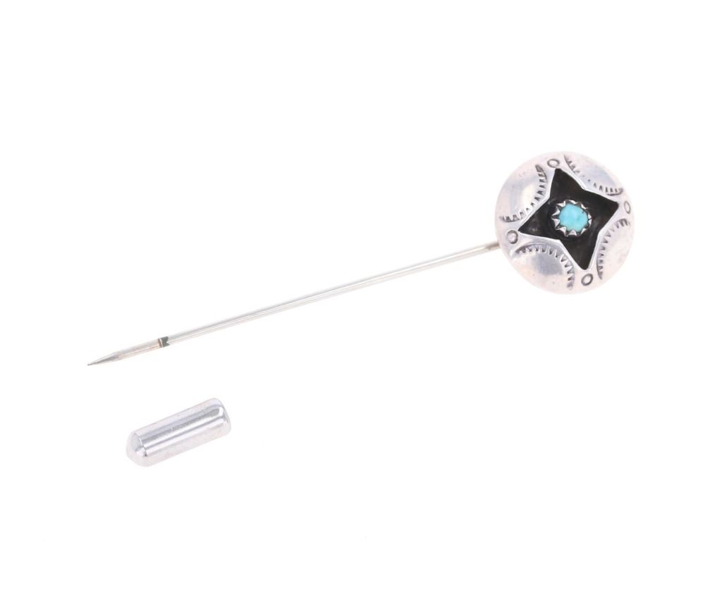 Featured in this lot is this Southwest and Navajo sterling silver pins and brooches. There are three pins or brooches in this collection with the first being a butterfly design with a silver frame and a oval cut turquoise cabochon set into the center. The second is a pock brooch with a sterling silver rod and a shadowbox design as the head with a round turquoise cabochon set into the center. The last is a cast sterling silver design with a round turquoise cabochon set into the head and marked as follows: Pine Springs. The condition of this collection of pins or brooches is good with no obvious signs of damage and shows good overall condition. The measurements of this collection ranges from 2 1/2" x 5/8" to 2" x 2". The collective weight of this collection of pins and brooches is 20g.