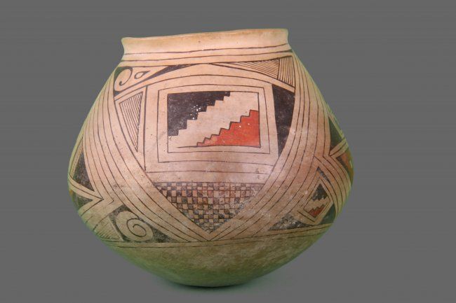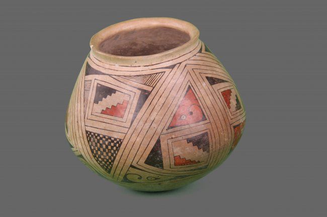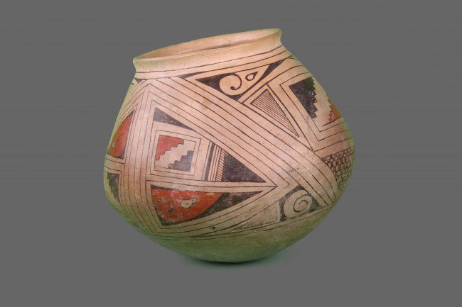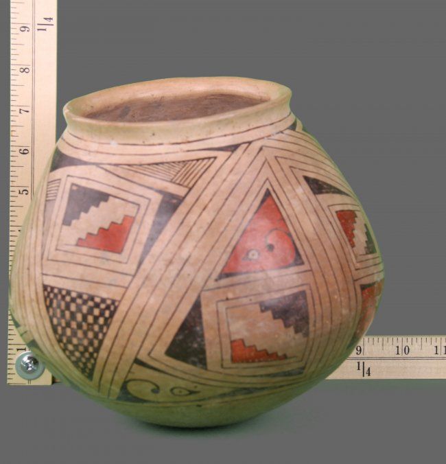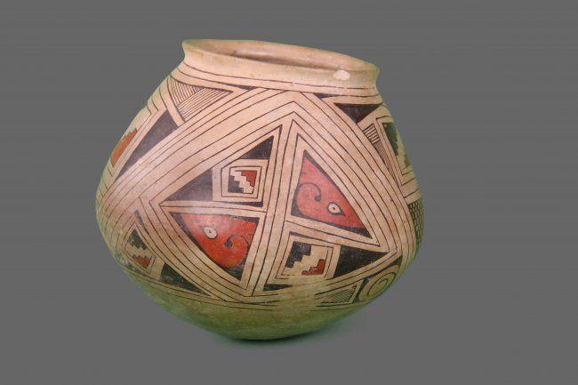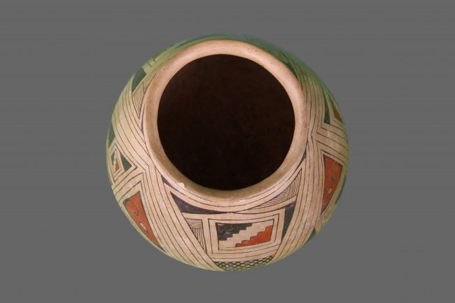 Southwest Polychrome Olla Medium Pottery with round bottom, Native American. Private collection of Joe Dan Osceola. Comes with Certificate of Authenticity signed by Joe Dan Osceola. (Size: See Last Photo for Measurements)