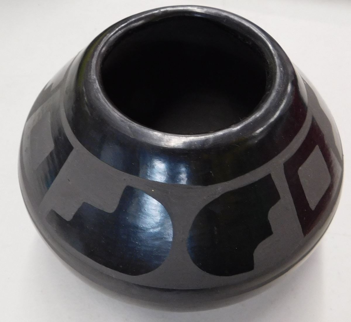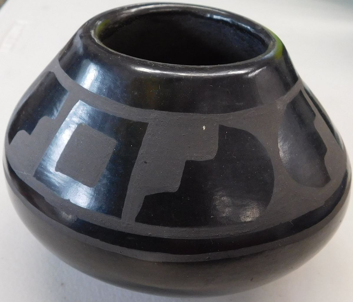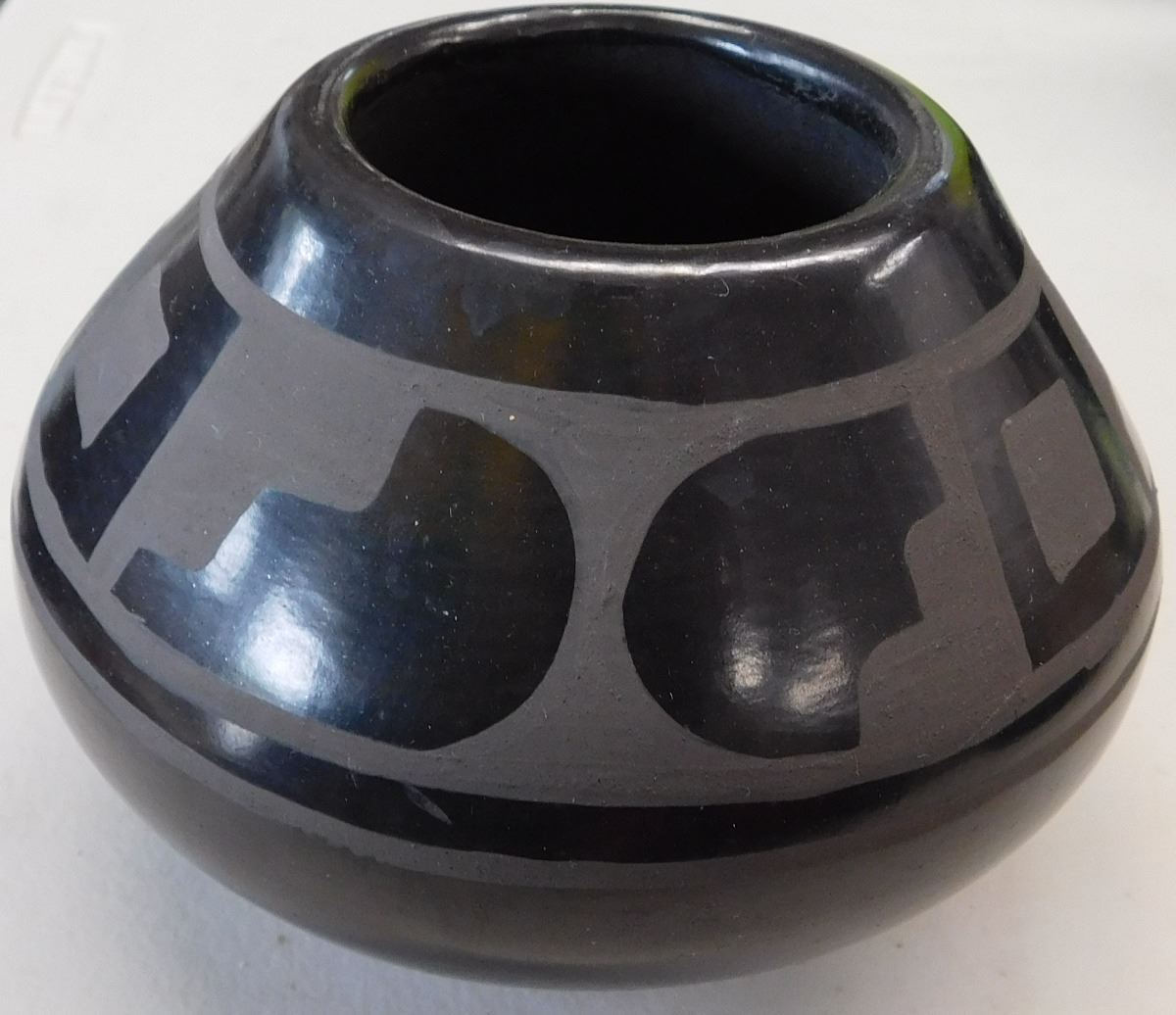 Southwest Pot, circa 1950s. Made of clay and paint, this item measures 3.5" x 5". Santa Clara Pueblo, New Mexico. Nice example of pueblo pottery. Condition: Good, see images. Shipping: $24.50, requires double box.