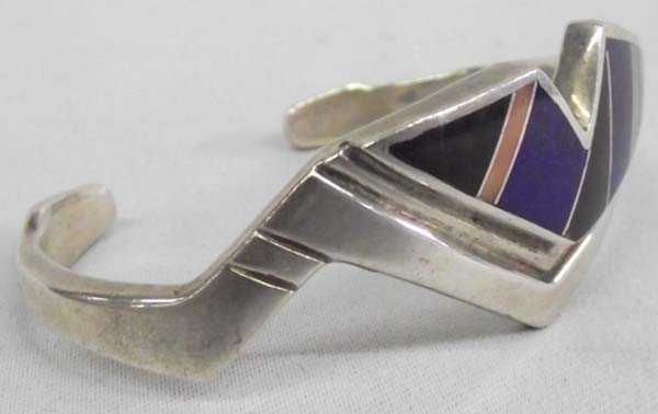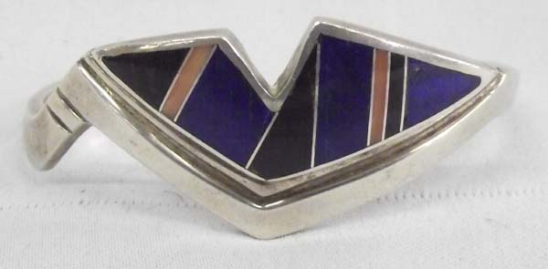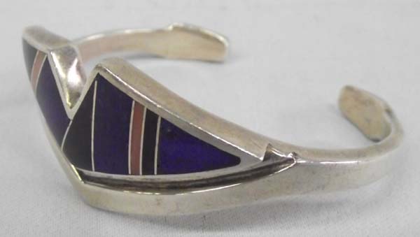 Southwest Sterling Silver Lapis, Jet Bracelet. Some pressure cracks in stone. Measurement in Inches - Inside Length(Including Opening) 6 1/2'' x 1''Width. Buyers Pay Actual Shipping and Handling Charges(see terms and conditions for more information).