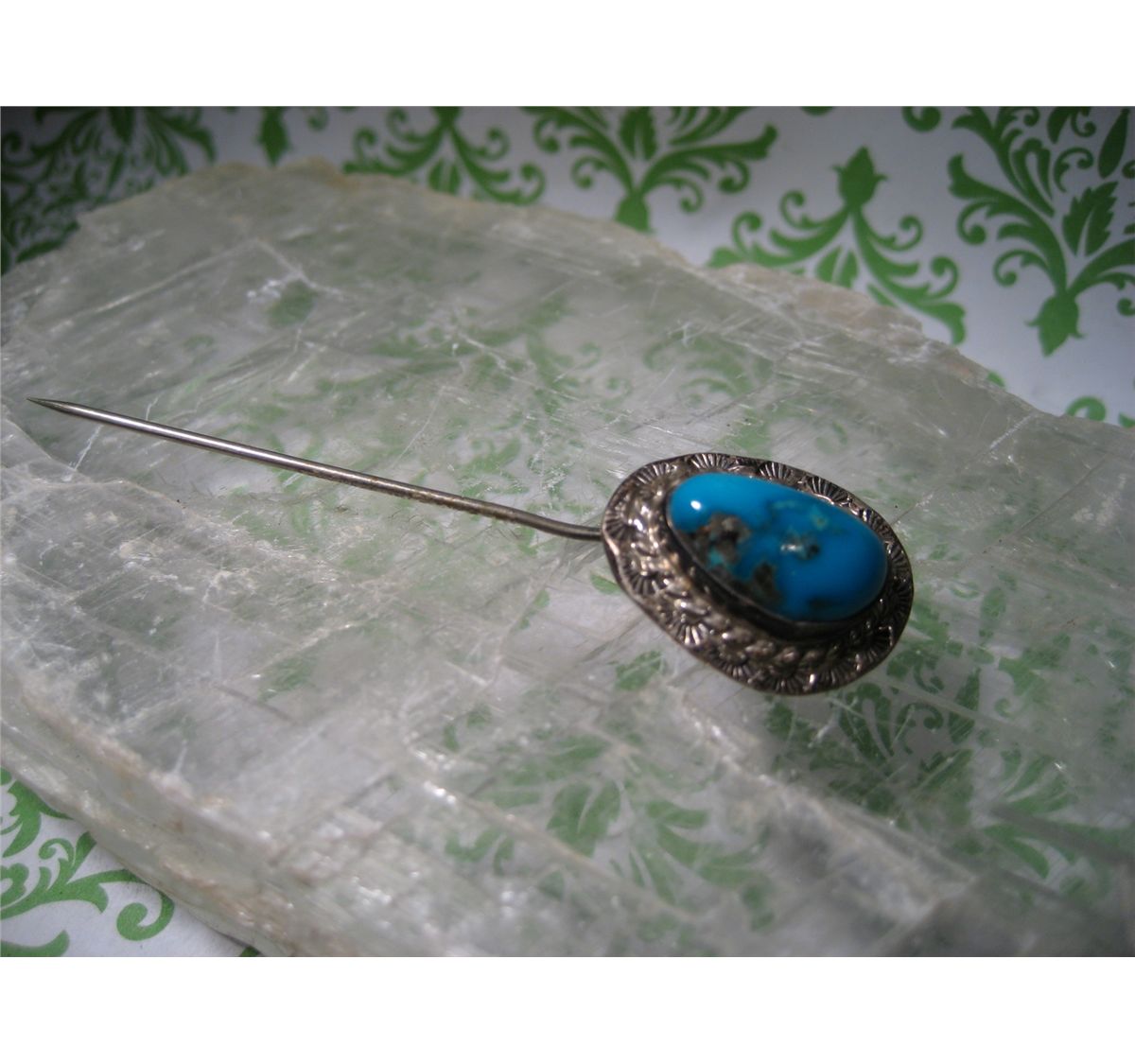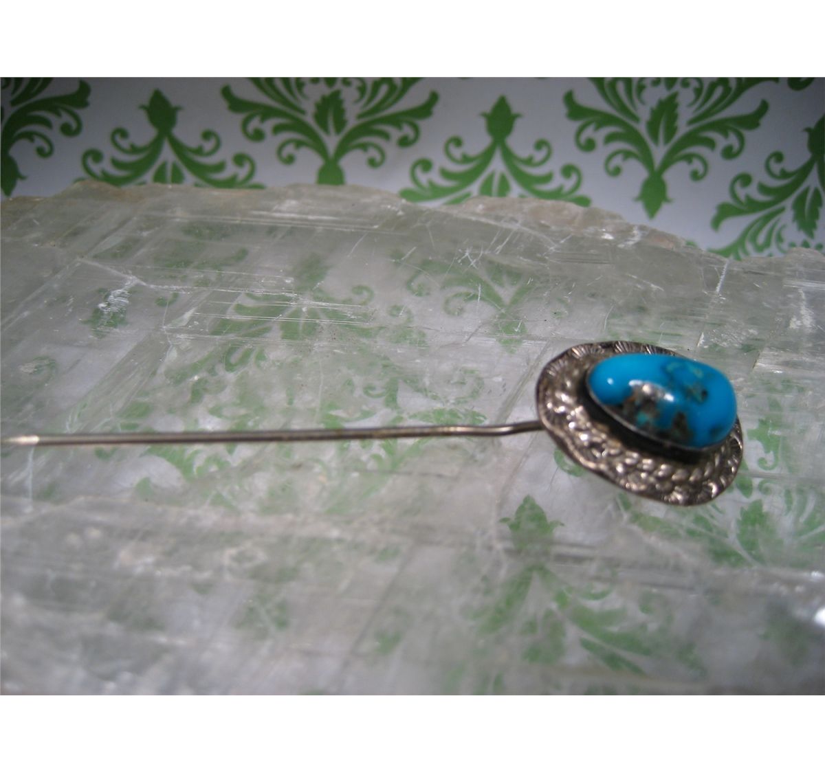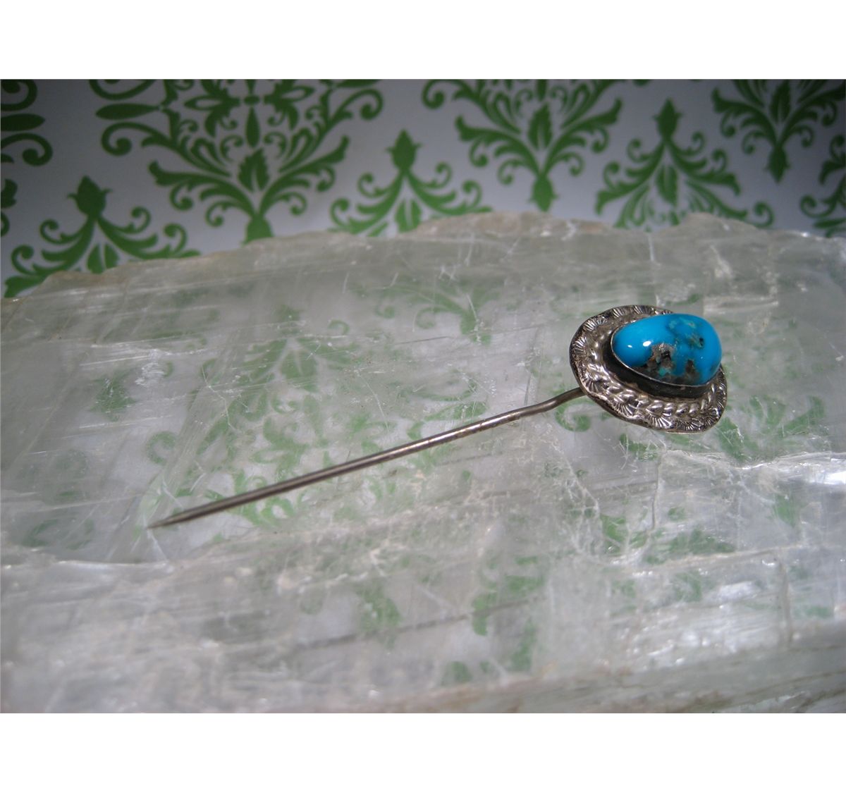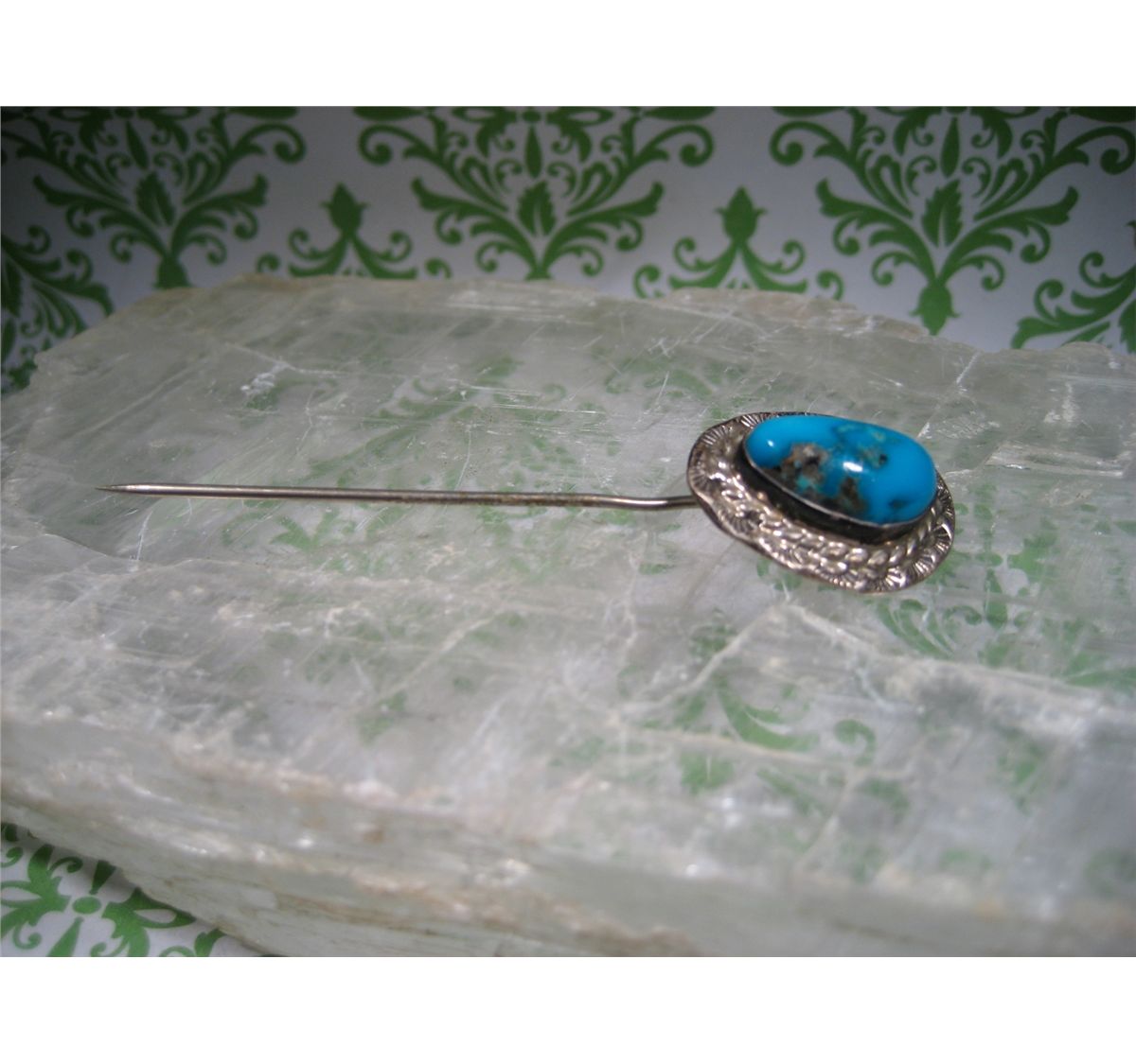 (1) Southwest Sterling Silver Turquoise Nugget Designed Stick Pin SIGNED