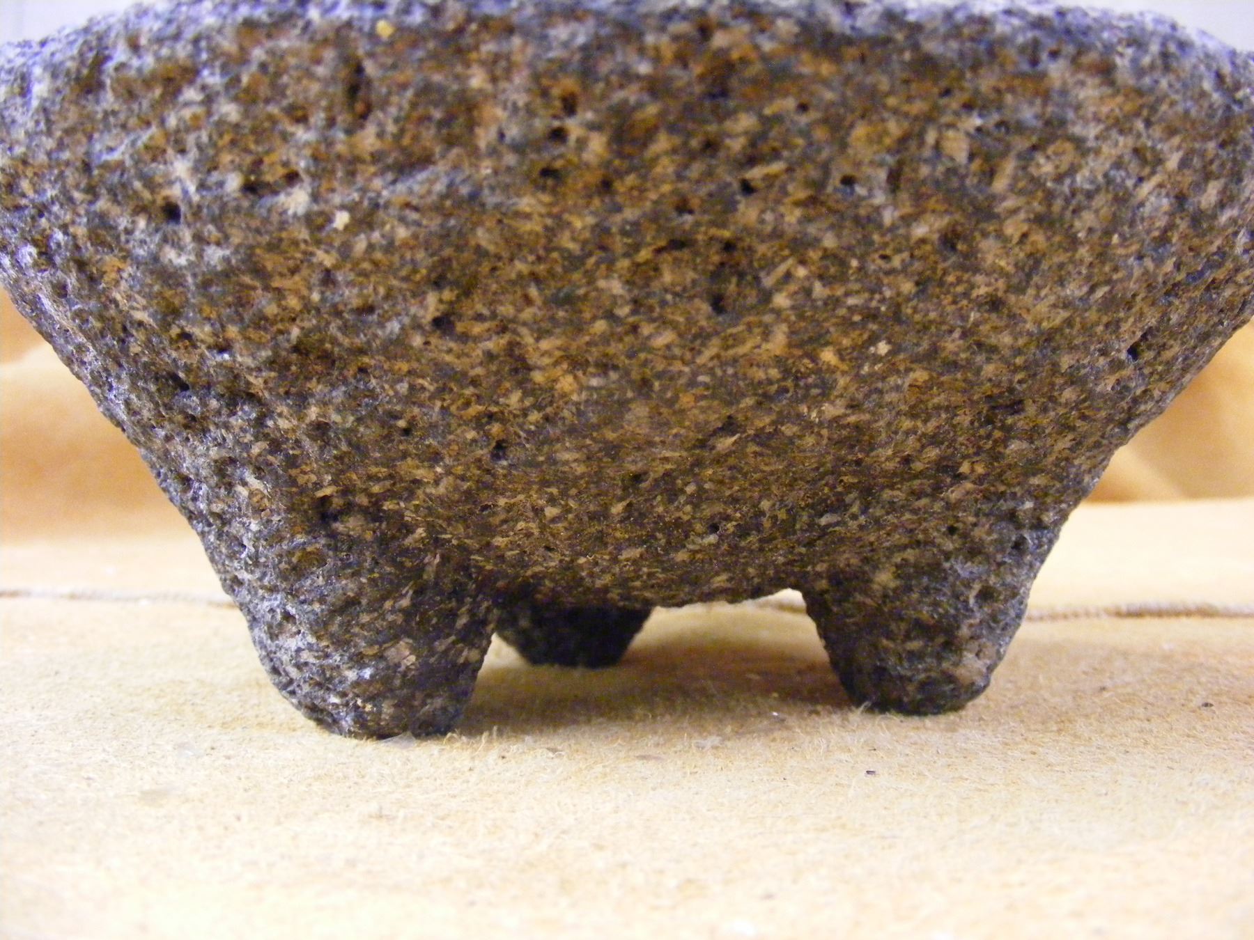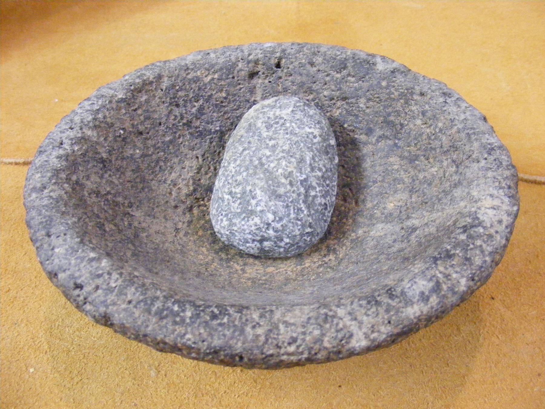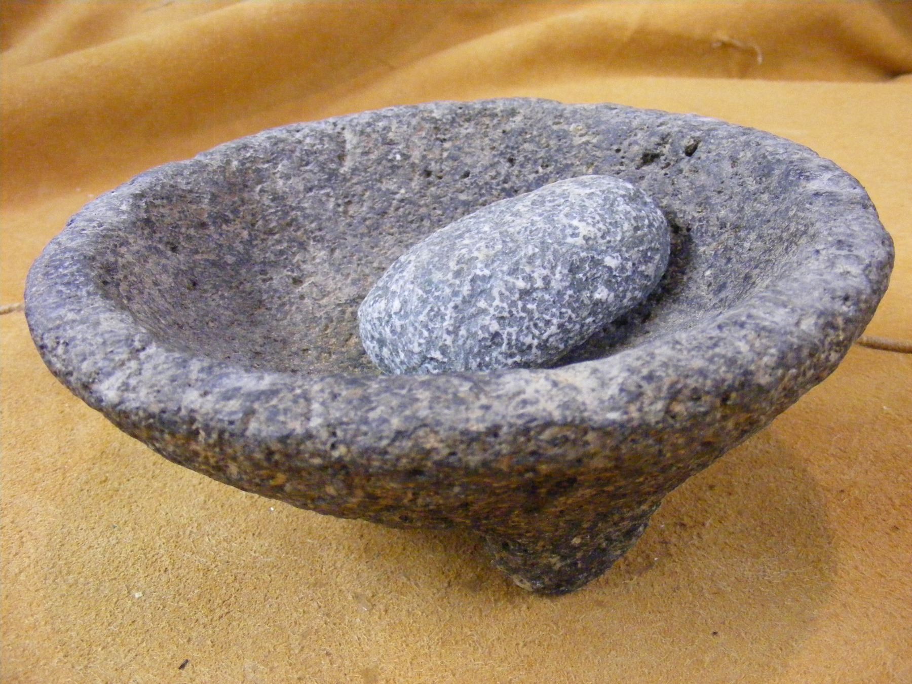 Southwest Stone Bowl and Grinder. 3 Legs. Nice Older Piece. 7" x 3" tall.
