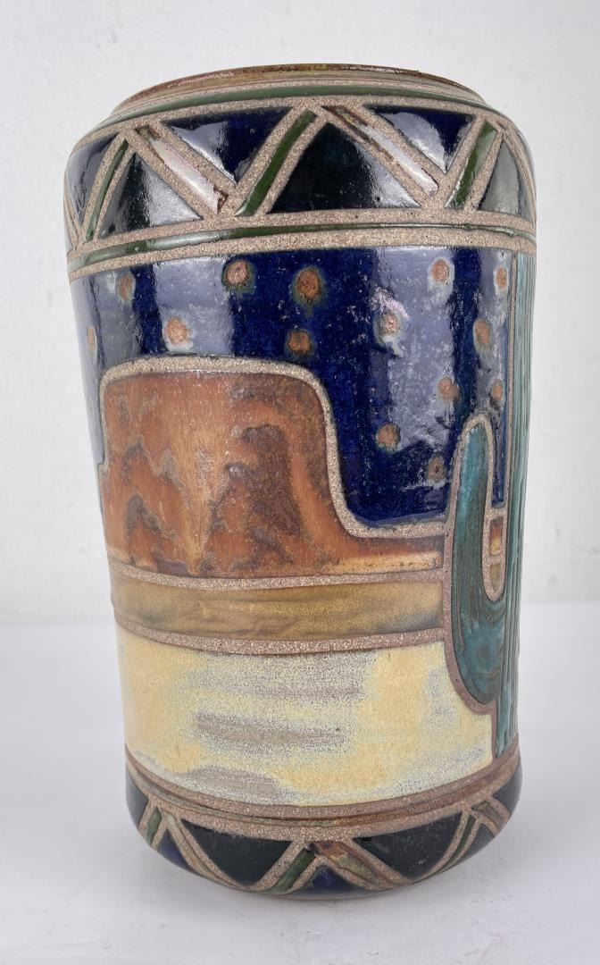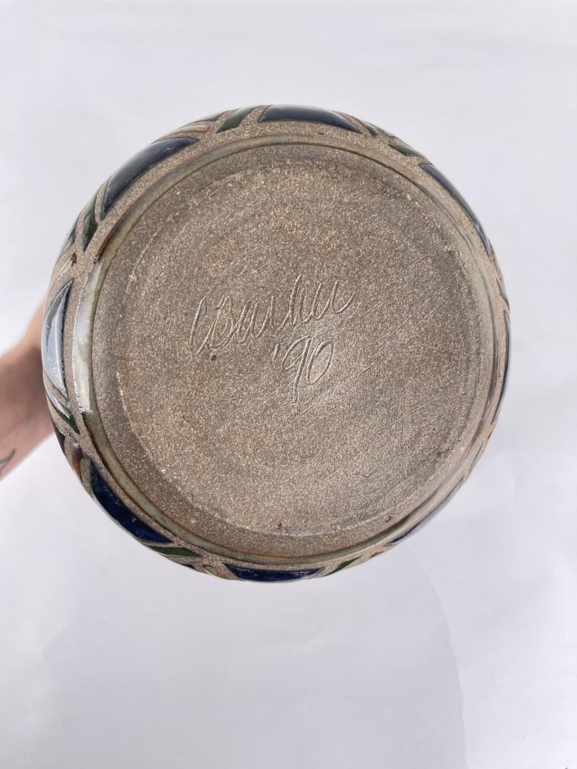 11 1/4" tall, 6 3/4" diameter. Signed as shown.