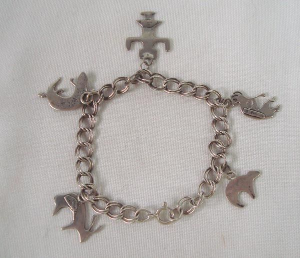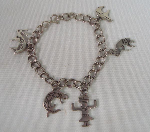 Southwest Style Charm Bracelet on a double link chain. 6.5'' long. Charms are hallmarked. Plenty of room to add charms.