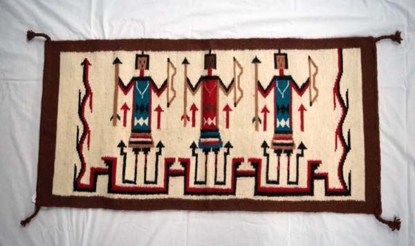Southwest Yei Design Textile Rug, measures 21'' x 42'', 4 cornered tassels intact