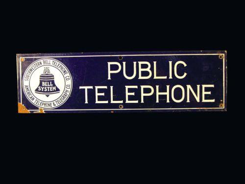 Southwestern Bell Porcelain Telephone Sign. Excellent condition. 19 X 5 1/2 inches.
