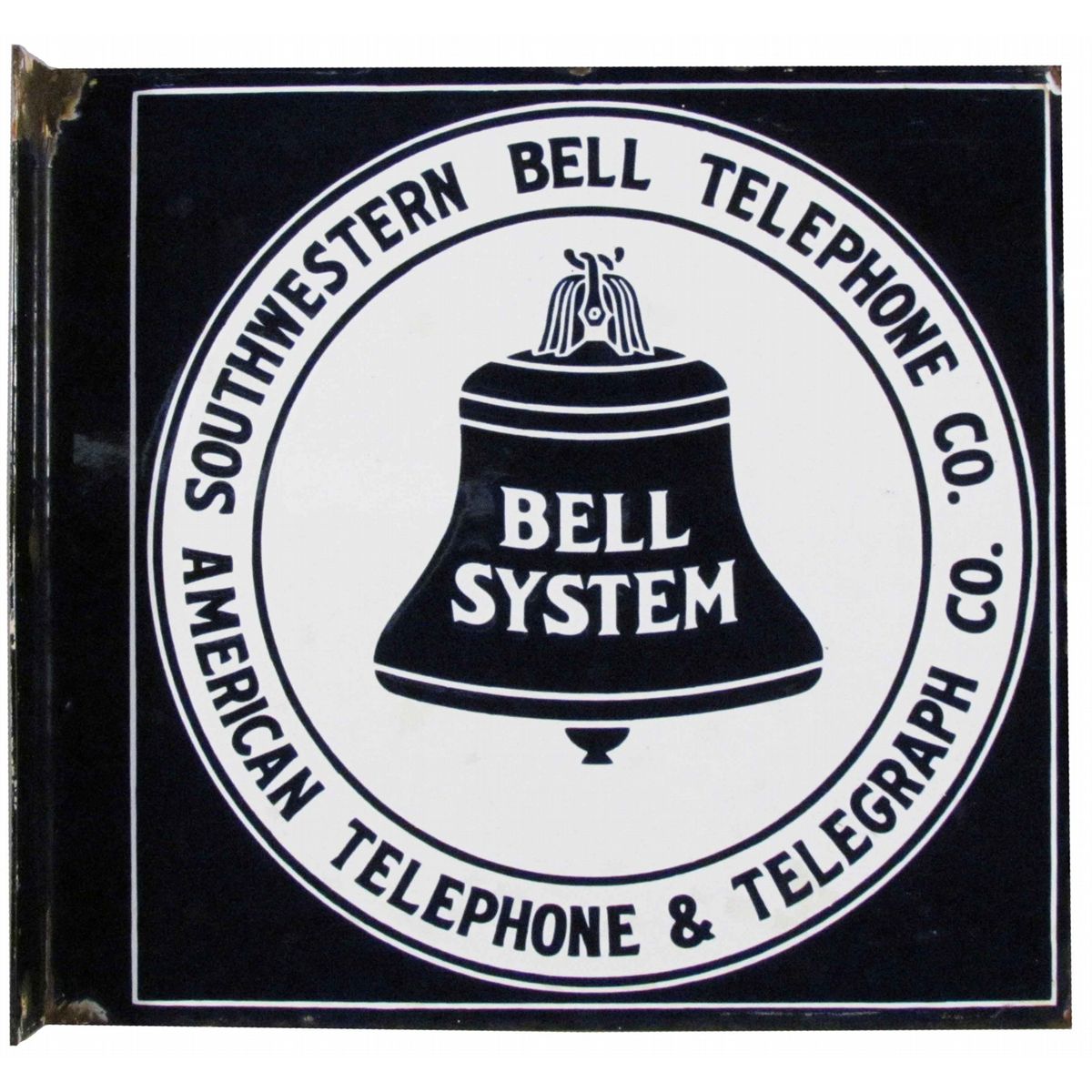 Southwestern Bell Telephone Porcelain Flange Sign. American Telephone & Telegraph. A couple of small chips otherwise excellent condition. 11 1/2 X 11 inches.