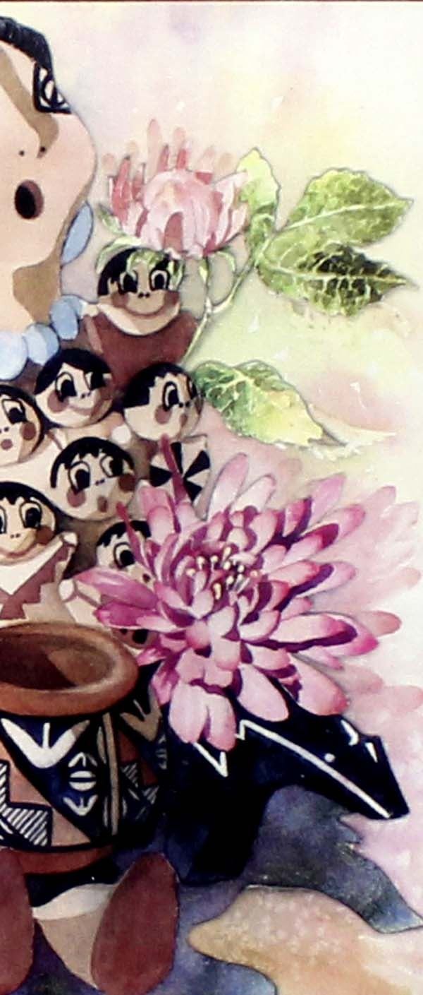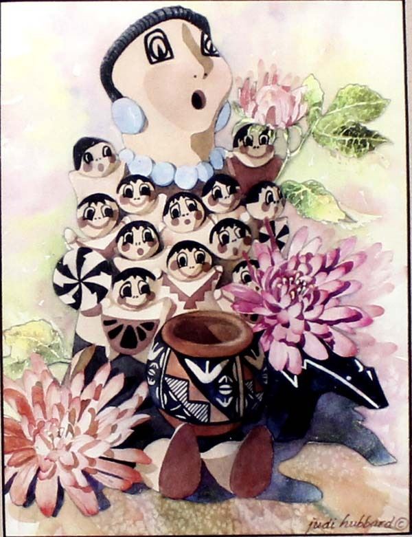 Southwestern Judi Hubbard Framed Print, visual measures 8.5'' x 7'', overall framed measurement of 12.5'' x 15.5'', framed, double matted, and under glass, Judi Hubbard is a southwestern artist from Tucson AZ, she specialized in ceramic tiles