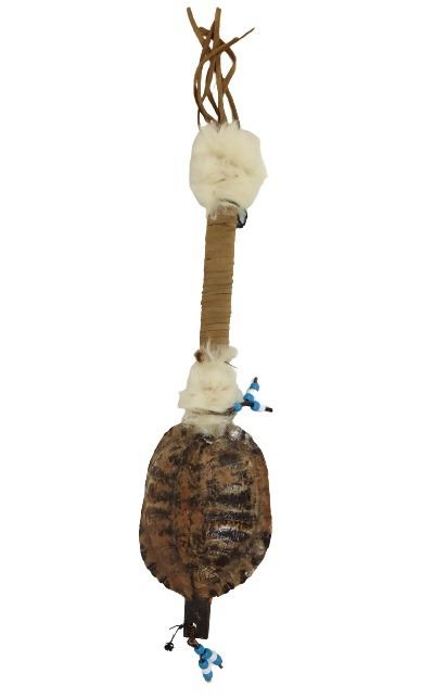 American Indian scepter, rattles when shaken. Trimmed with rabbit fur, leather, and beads.
