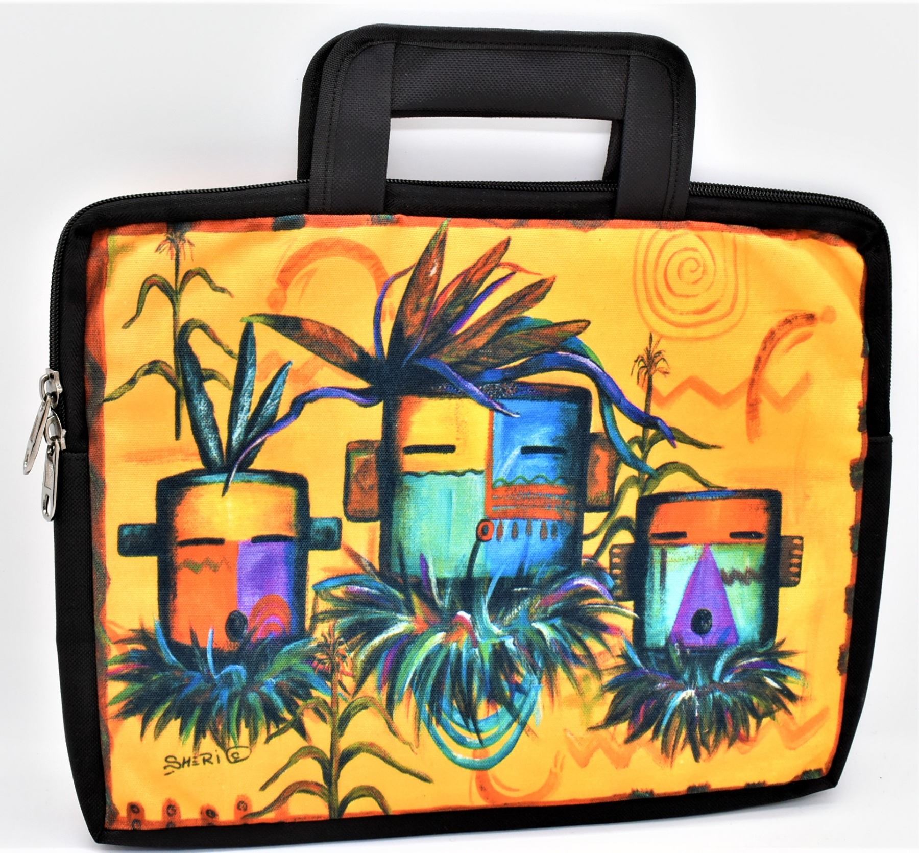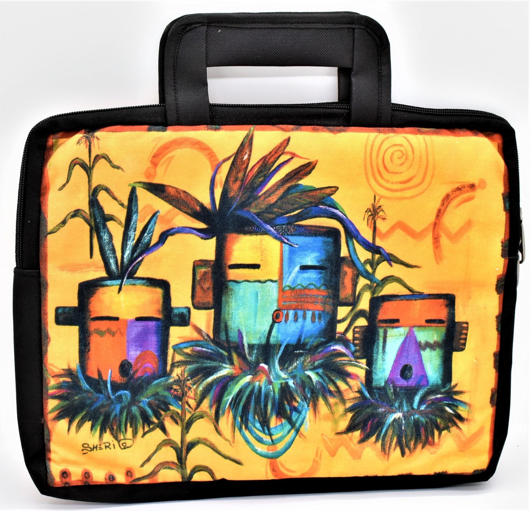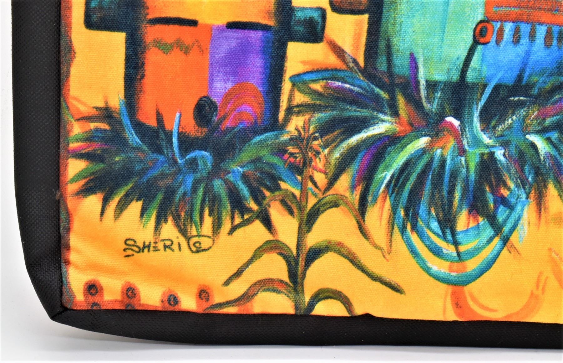 Southwestern iPad Tote, measures 15'' x 14'' (with handles) and 15'' x 11.5'' (without handles)