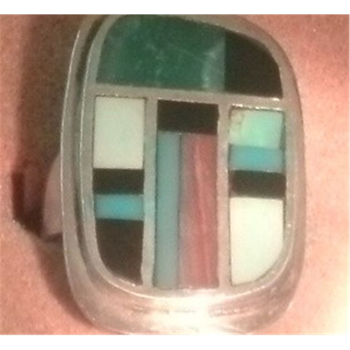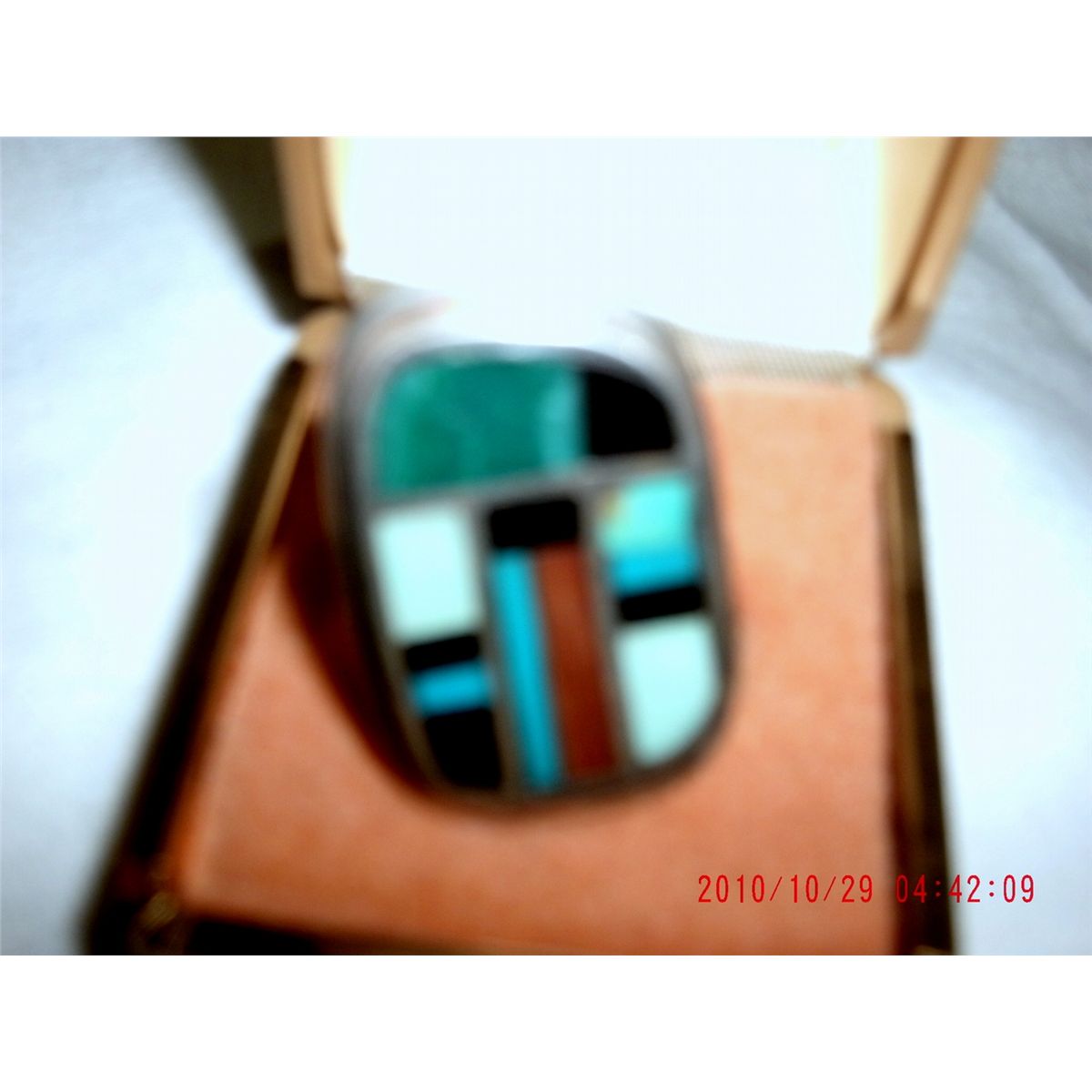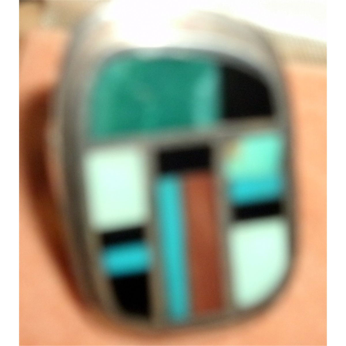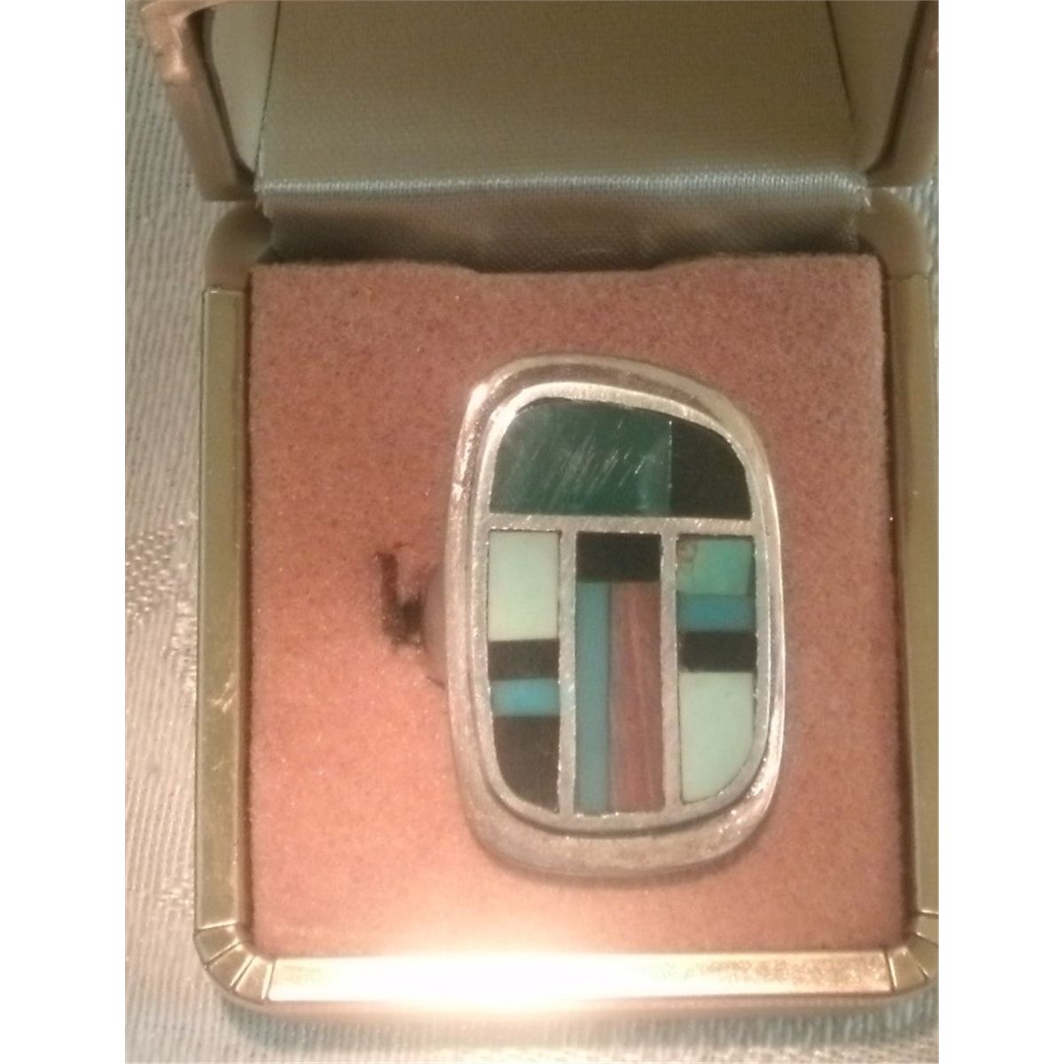 Large silver man's ring, size 9 1/4. Turquoise, onyx. Please see pictures for details and condition.