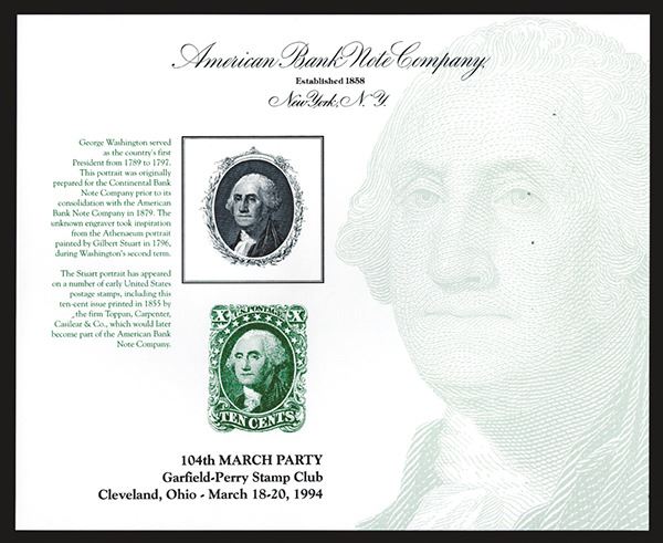 ABNC. Featuring Stuart's George Washington portrait and 10c stamp. As made. 200 Pieces.