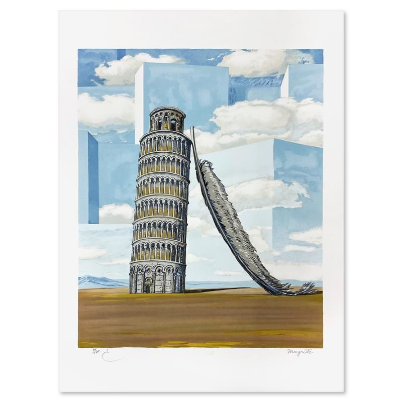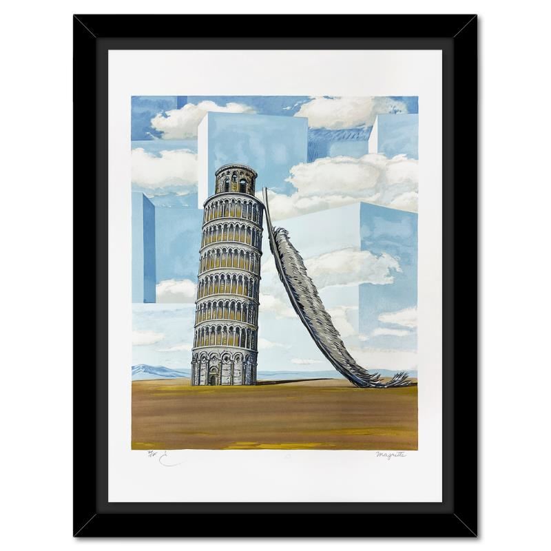 "Souvenir de Voyage" is a limited edition lithograph by Rene Magritte (1898-1967). This piece is numbered 71/275 and bears the dry stamps of the Magritte Foundation & ADAGP (Society of Authors in the Graphic and Plastic Arts) and is signed by the President of the Magritte Foundation, Charly Herscovici. This piece comes custom framed. Includes Certificate of Authenticity. Measures approx. 23.5" x 26" (frame), 17.5" x 20" (image).