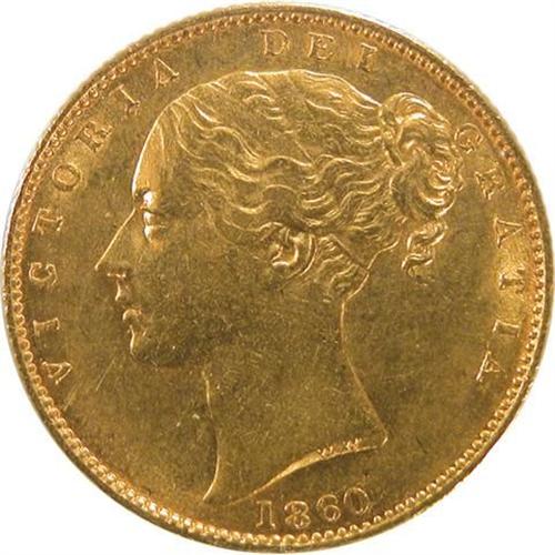 Sovereign 1860 Inverted V in Gratia, ICCS EF-40. Listed as extremely rare in Spink