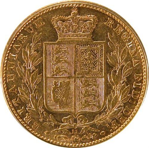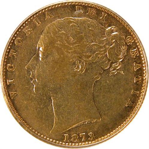 Sovereign 1873 Shield PCGS AU-53. Reverse Die Number 11