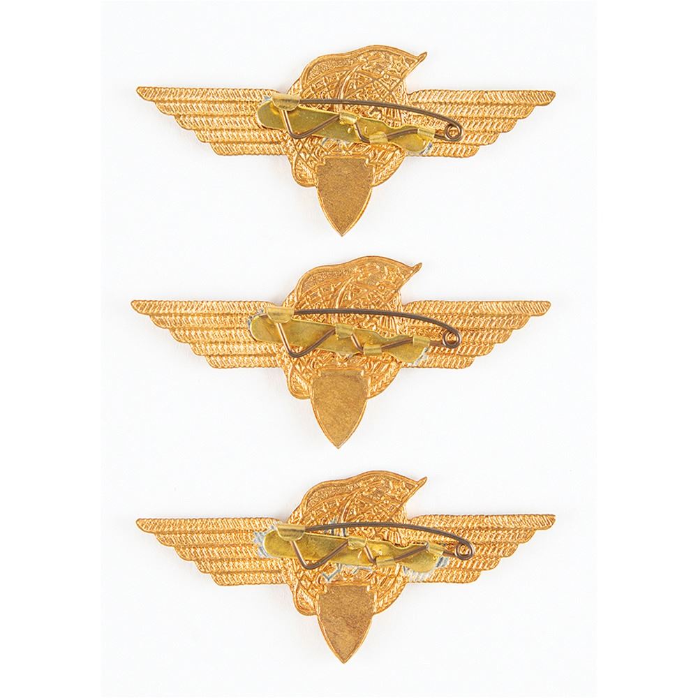 Extremely rare set of three official gold-tone enameled Soviet cosmonaut wing pins, each measuring 3Ë long, identified as class "1," "2," and "3." In overall fine condition.