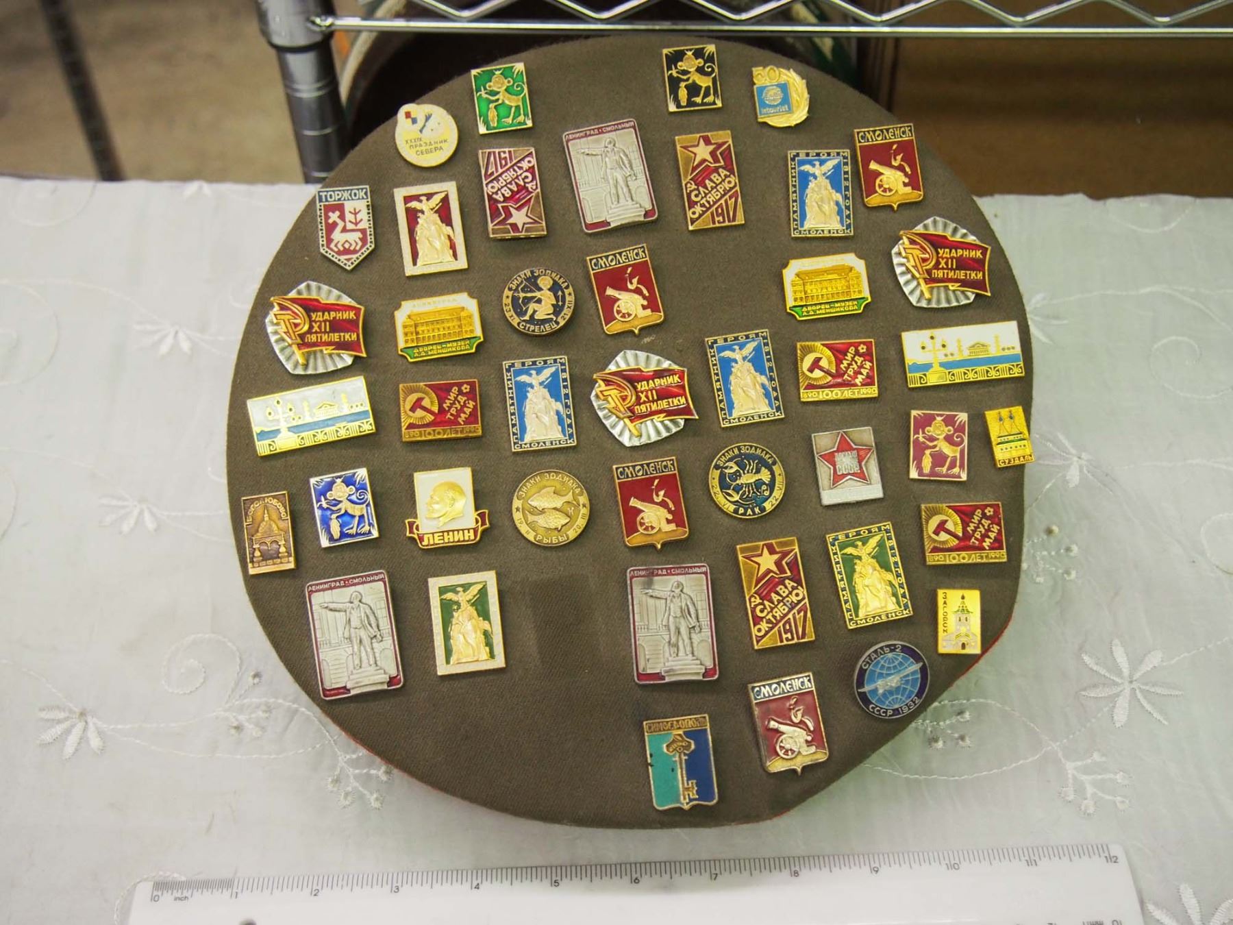 Soviet Russian Cap W/ Tons Of Russian Pins