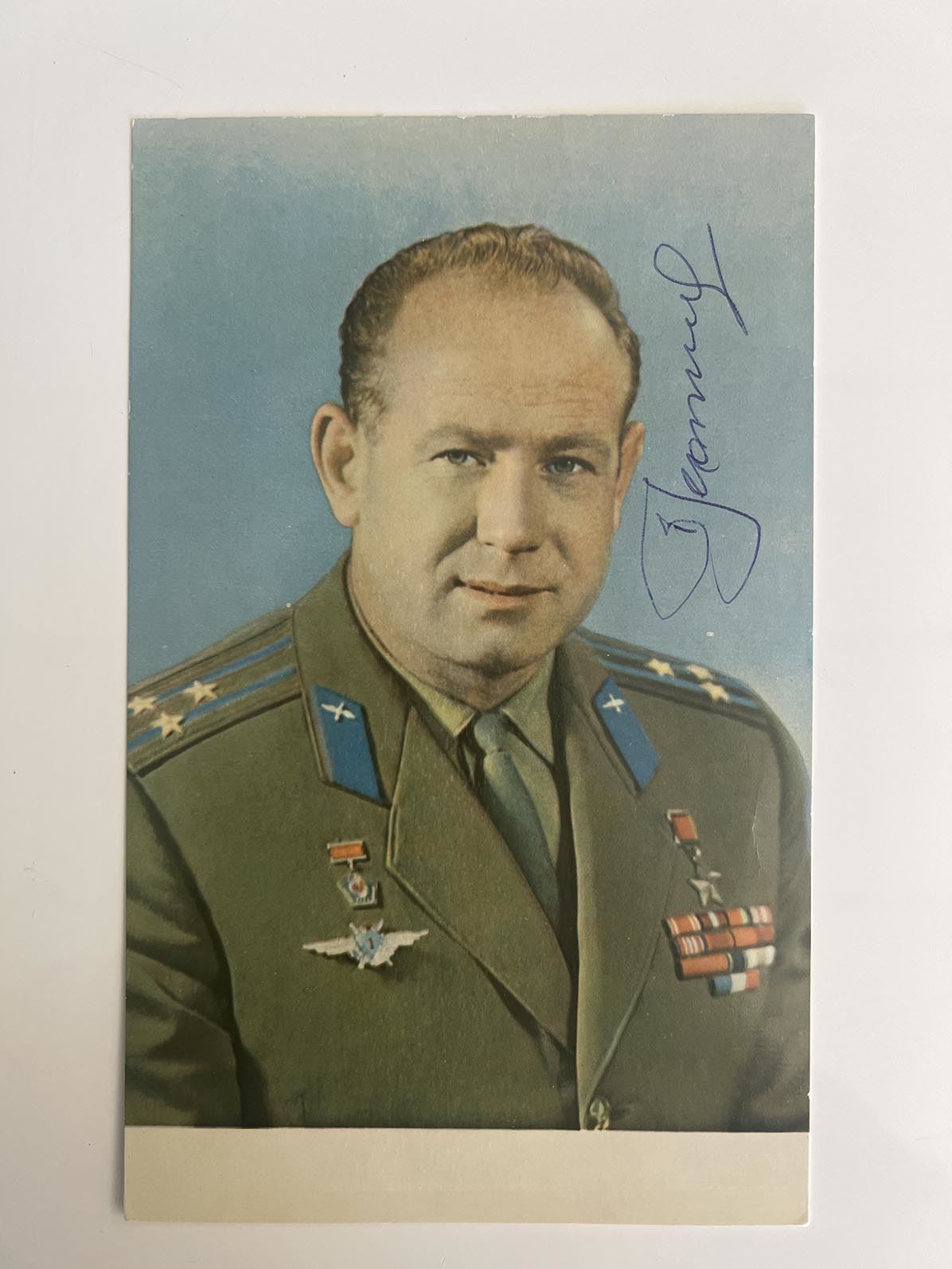 Soviet cosmonaut Alexei Leonov signed postcard . 4x6 inches