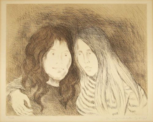 Soyer Signed / Numbered Etching And Aquatint "Friends" 1973. Signed In Pencil By Raphael Soyer And Numbered 12/250. Size: 10 3/4 X 13 5/8 Inches (Plate) - Professionally Framed & Matted - Comes With Certificate - -