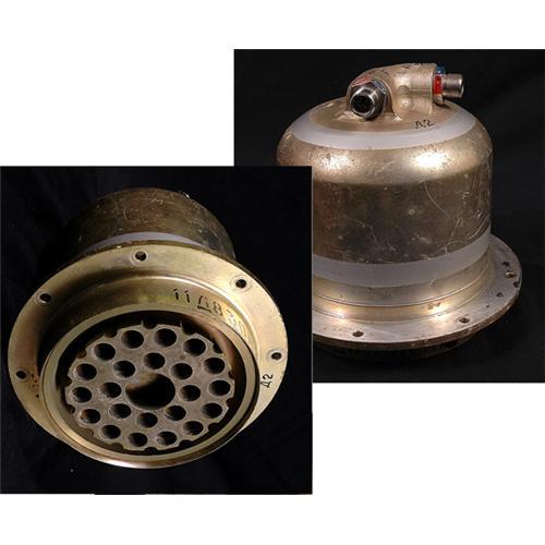 <Our item number 139917><B>Soyuz "Soft Landing" Retro Rocket.</B> (8x7") This fairly heavy, used retrorocket is a fascinating piece of Russian technology. The Soyuz descent module descends through the atmosphere shielded by a heatshield until the rate of descent has slowed sufficiently to deploy parachutes to slow the descent capsule even further. At a height of about 2 meters (about 7 feet) from the earth's surface, the heatshield is released, exposing four retrorockets which fire just prior to earth impact, thus providing a zero-velocity, soft landing for the module - and hopefully a safe landing for the cosmonauts contained in the capsule. <BR><BR>While used on all of the Soyuz descent capsules, these retrorocket engines are almost never available to collectors. Since American space flights land in water, or, in the case of the Space Shuttle, use a different landing concept, similar engines are non-existent and can only come from Russian flights. A similar engine realized ab out $11,000 in a recent auction. This retrorocket will fill an important position in any space collection. <BR>Estimated Value $7,500 - 10,000. <BR><BR>Our item number 139917<BR><IMAGES><P ALIGN="CENTER"><IMG SRC="http://www.goldbergcoins.net/liveauction/49jpegs/139917.jpg"> </P></IMAGES>