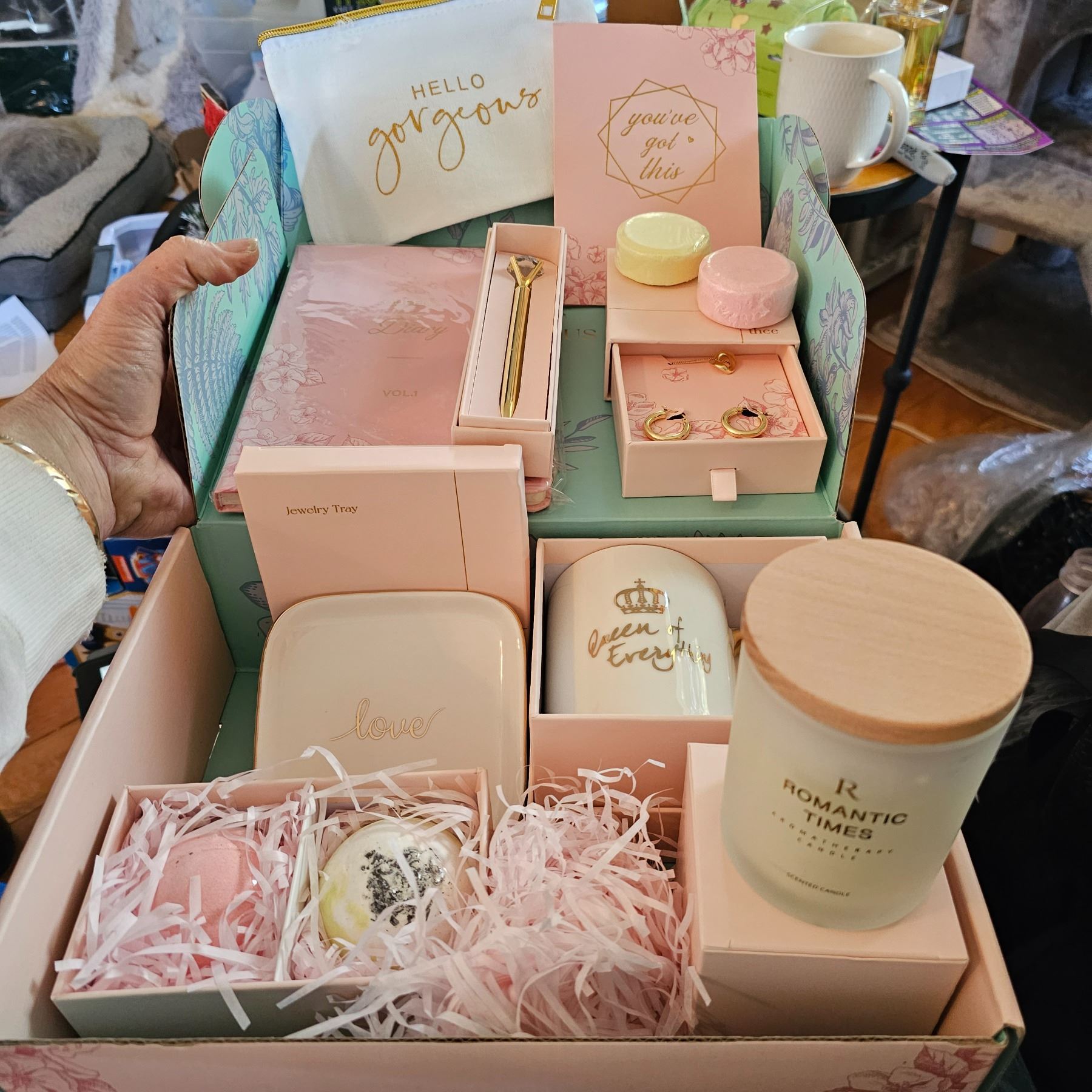 Gift For A Queen Spa Set, Includes Candle, Pen, Diary, Bath Bombs, Jewelry Tray, Card, Coffee Cup, Jewelry Set, And Mini Bag, New