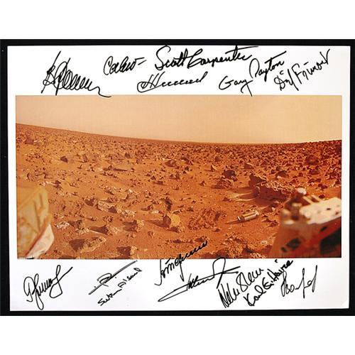 <Our item number 139826><B>Space Autographs, 1987, Autographed NASA MARS Lithograph.</B> A striking NASA 8.5x11" color lithograph of Viking's Visit to Mars, autographed by 13 astronauts and cosmonauts including Ryumin, Savitskaya, Carpenter, Nikolayev, Payton, Fremont, Rukavishnikov, Al-Saud, Tereshkova, Alexandrov, Sharman, Henice and Volkov. Minor edge wrinkles, but striking. <BR>Estimated Value $150 - 250. <BR><BR>Our item number 139826<BR><IMAGES><P ALIGN="CENTER"><IMG SRC="http://www.goldbergcoins.net/liveauction/49jpegs/139826.jpg"> </P></IMAGES>