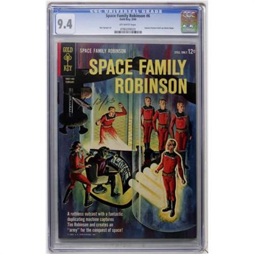<B>Space Family Robinson #6 (Gold Key, 1964) CGC NM 9.4 Off-white paegs.</B></I> Painted cover. Overstreet 2007 NM- 9.2 value = $95. CGC census 9/07: 1 in 9.4, 1 higher. <I> From the Fantastic Frank Collection.</B></I><BR><BR><b>Shipping:</b> Comics - Slabbed (certified) (<a target="_blank" href="http://www.heritageauctions.com/common/shipping.php">view shipping information</a>)