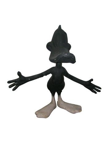 From the 1996 animated-comedy film Space Jam, this is a large size Daffy Duck on-set eyeline model. Eyeline models are used during filming of live action/animated sequences so the actors know where to look when delivering dialogue to animated characters. The figure is hard plastic over foam core and the body is painted 'Daffy Duck' black, except for the feet. There are bolts beneath each foot for positioning on set. An incredible piece for the Looney tunes collector. Suffice to say there aren't many of these out there. (Measures approx. 33"x34"x31"). Oversized item. Additional postage required.
