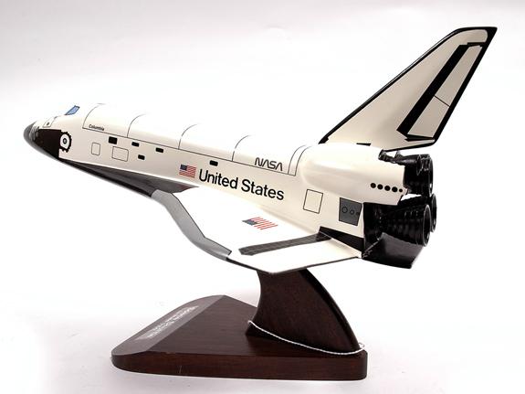 Space Models, "Columbia" Space Shuttle Model (14x10") A striking black and white Philippine 1/100 scale model on a triangular wooden base. Virtually new condition.
