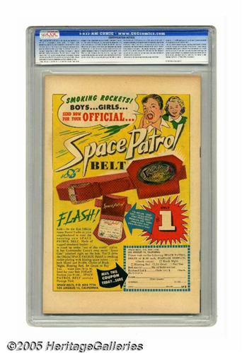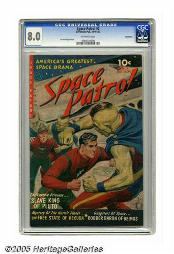 <B>Space Patrol #2 (Ziff-Davis, 1952) CGC VF 8.0 Off-white pages.</B></I> A tie-in with the TV show of the same name, this comic sports a painted cover by Norman Saunders. The interior artists include Bernie Krigstein. Overstreet 2005 VF 8.0 value = $406. CGC census 4/05: 1 in 8.0, 1 higher.