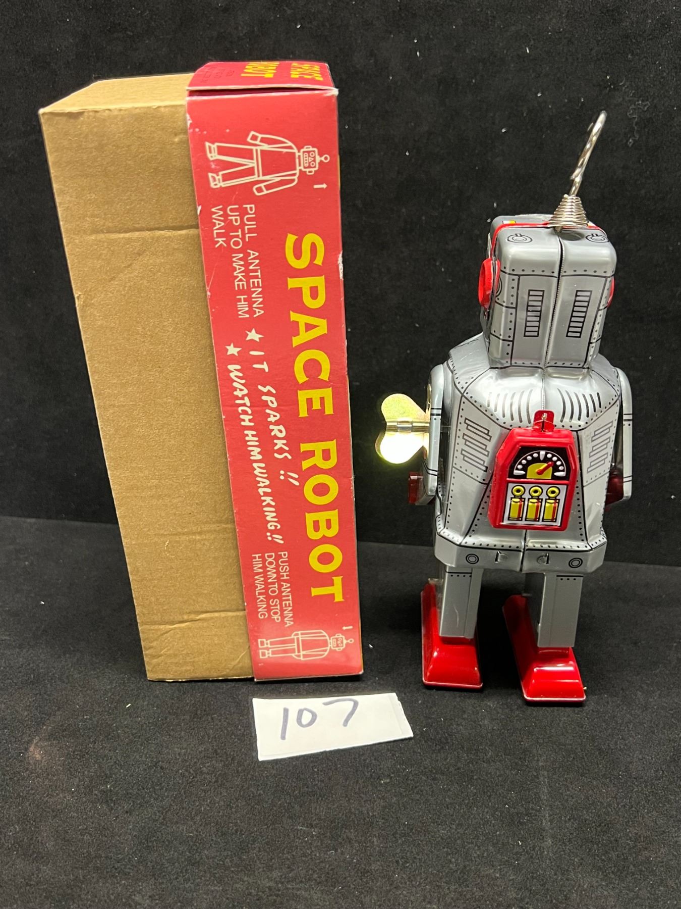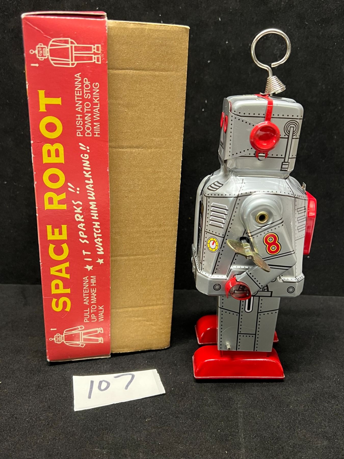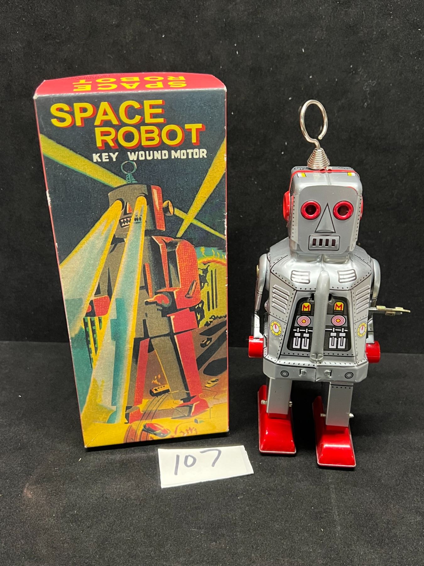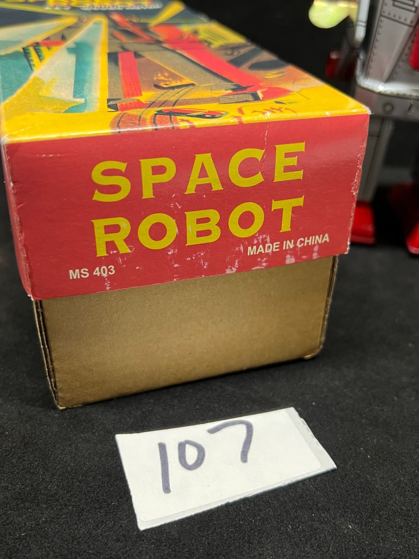 Space Robot Key Wound Motor Metal Toy MS 403 China W/box Appr: 8"T 3"W