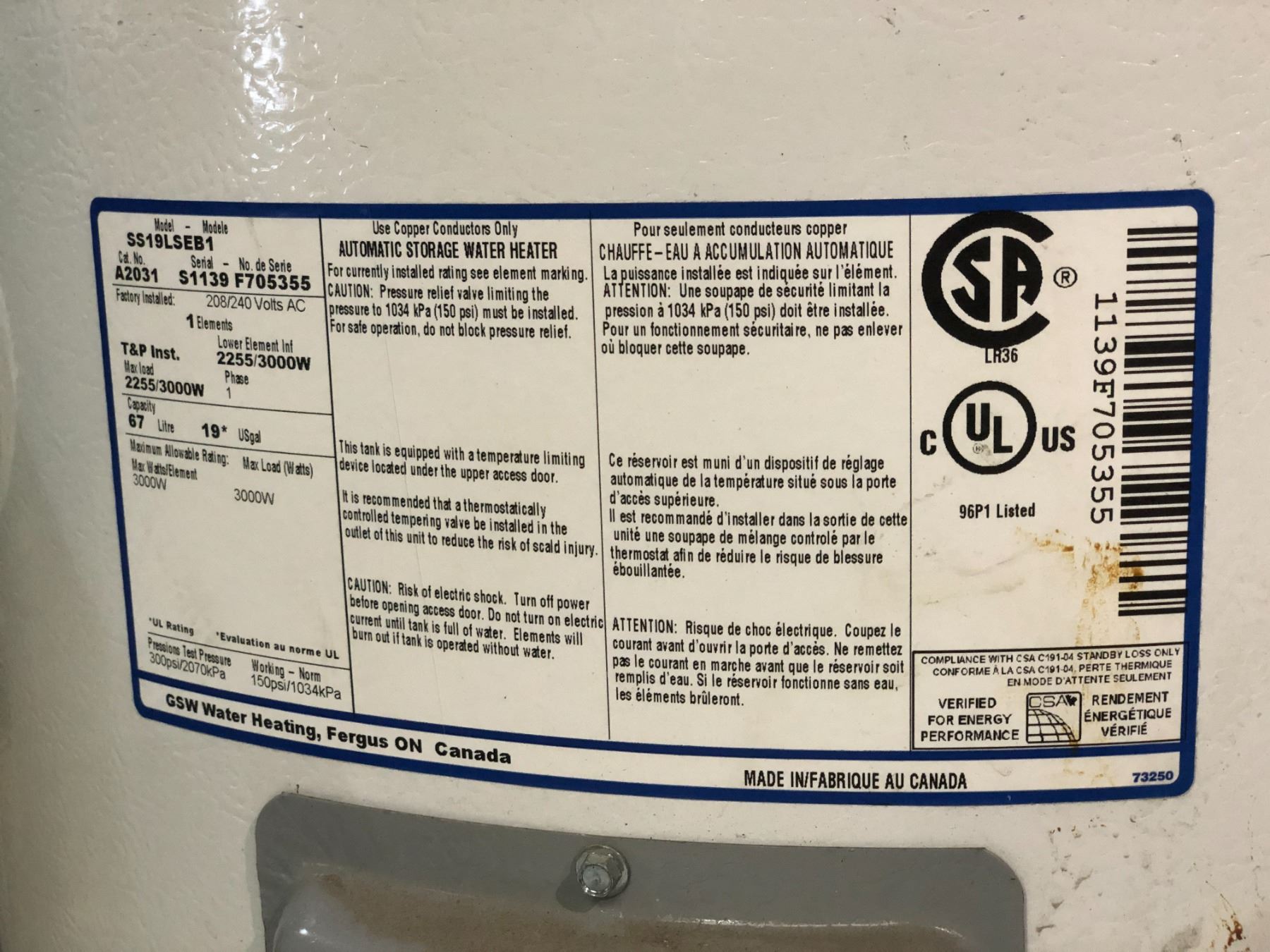Space Saver automatic storage water heater Mode - SS19LSEB1