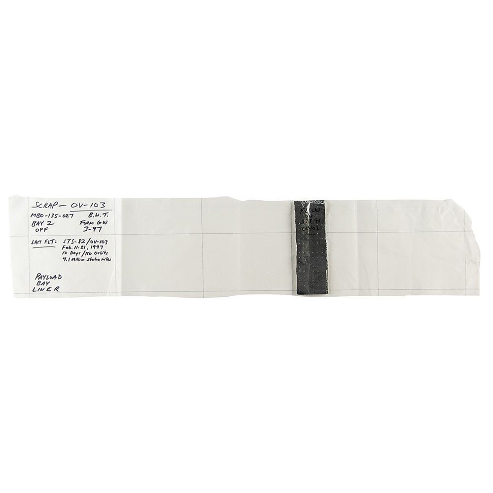Two Space Shuttle items inscribed as being flown‰ÛÓa substantial 32è x 7.25è piece of payload bay liner from the Space Shuttle Discovery (OV-103) that flew into space during the STS-82 mission, NASA's second mission to service the Hubble Space Telescope, which is marked in black felt tip on the left side: ‰ÛÏSCRAP‰ÛÓOV-103, MBO-135-027, B.W.T., Bay 2, Form GW, OPF, 3-97, Last FLT: STS-82/OV-103, Feb. 11-21, 1997, 10 Days/150 orbits, 4.1 million statue miles, Payload Bay Liner‰Û; and a reflective 2è x 6.26è sheet of thermal insulation from the Space Shuttle Columbia (OV-102) that flew into space during the STS-94 mission, a reflight of the STS-83 Microgravity Science Laboratory (MSL) mission, marked in black felt tip, ‰ÛÏFlown on STS-94, OV-102.‰Û In overall fine condition.