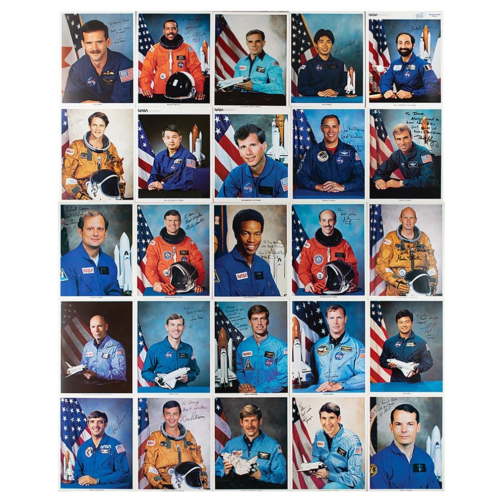 Collection of 25 official color 8 x 10 NASA lithographs of Space Shuttle astronauts, each signed in ink by the subject, with most inscribed. Signers are: Joe Allen, James P. Bagian, Guion S. Bluford, Jr., Daniel C. Brandenstein, Leroy Chiao, Michael L. Coats, Martin J. Fettman, Gordon Fullerton, Bill Gregory, Fred Gregory, Umberto Guidoni, Chris Hadfield, Bernard A. Harris, Jr., Karl G. Henize, Donald H. Peterson, Sherwood C. Spring, Robert C. Springer, Robert L. Stewart, William E. Thornton, Norm Thagard, Eugene H. Trinh, Jim Voss, Jim Wetherbee, Koichi Wakata, and David M. Walker. In overall fine condition.