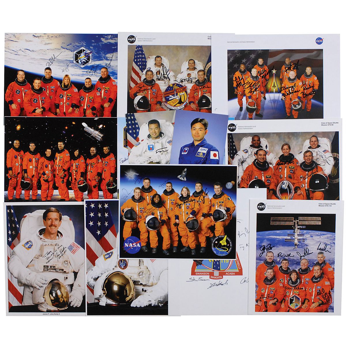 Collection of 13 signed photos, various finishes, both individual and crew photos, ranging in size from 4.5 x 5.75 up to 10 x 8, each signed by the astronaut or crew member(s) pictured. Individual signers are: Soichi Noguchi, Akihiko Hoshide, Scott Parazynski, Jim Reilly II (ins); and crew-signed photos are from STS-120, STS-125, STS-126, STS-129, STS-119, STS-98, STS-110, STS-113, and STS-130. In fine condition.