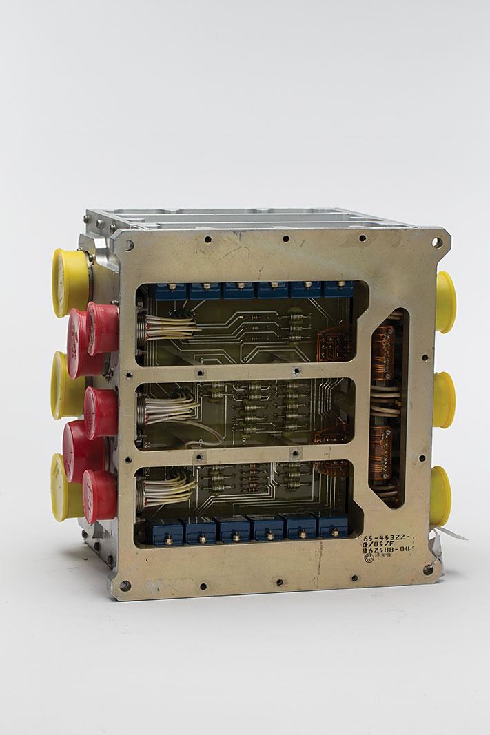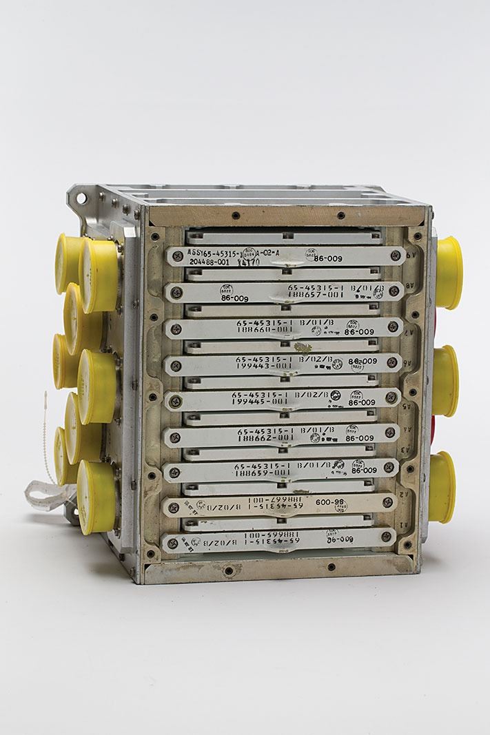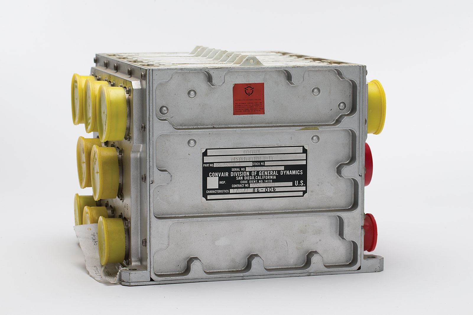 Space Shuttle Centaur Control Distribution Unit, measuring 8.75? x 7? x 9.25?, with a Convair Division of General Dynamics tag on one side, reading: "Control Distribution Unit, Part No. 65-45300-4, Serial No. 501680-001…Contract No. NAS3-22901, Characteristics L/01/J 86-006." In fine condition.